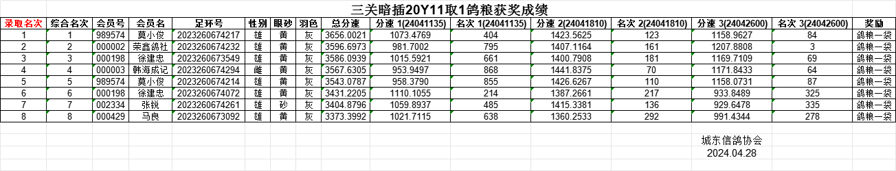 城东信鸽协会400KM临洮大赛20Y10取1粮