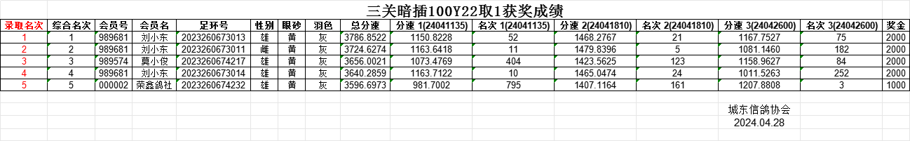 城东信鸽协会400KM临洮大赛100Y22取1