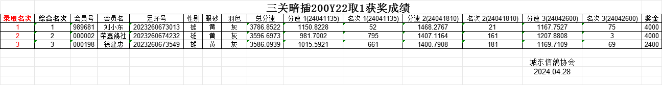 三关暗插200Y22取1获奖成绩