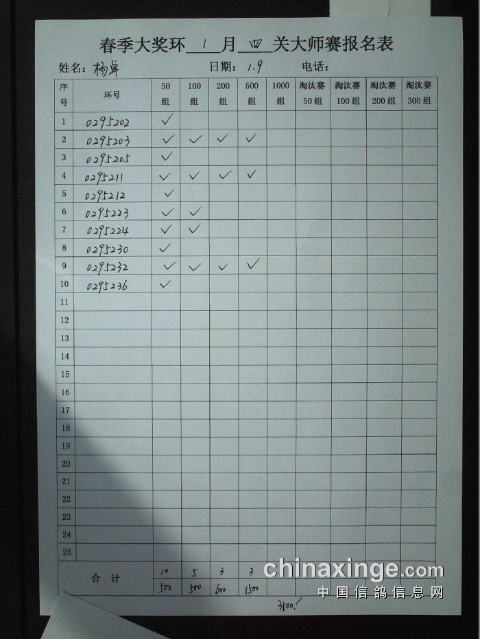2024年春季210元大奖环1月份精英赛明细表(1)
