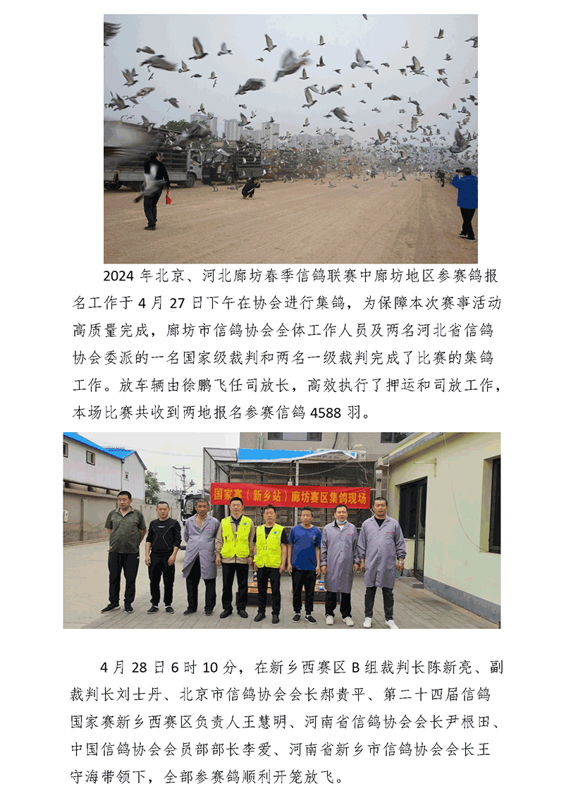 第二十四届春季信鸽国家赛 北京、河北廊坊 联赛新乡开赛