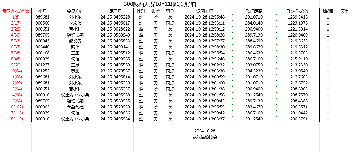 城东信鸽协会400KM临洮大赛10Y11取1菜籽油