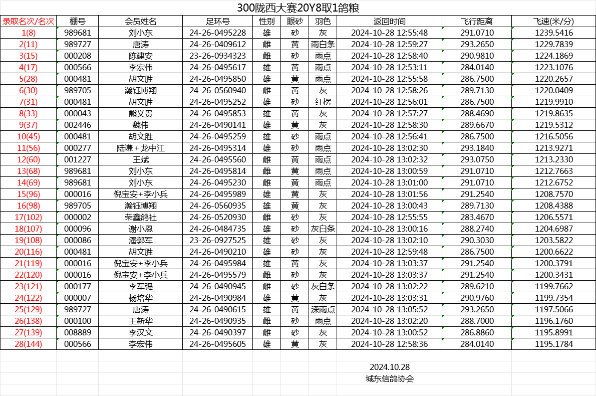 城东信鸽协会400KM临洮大赛20Y10取1粮