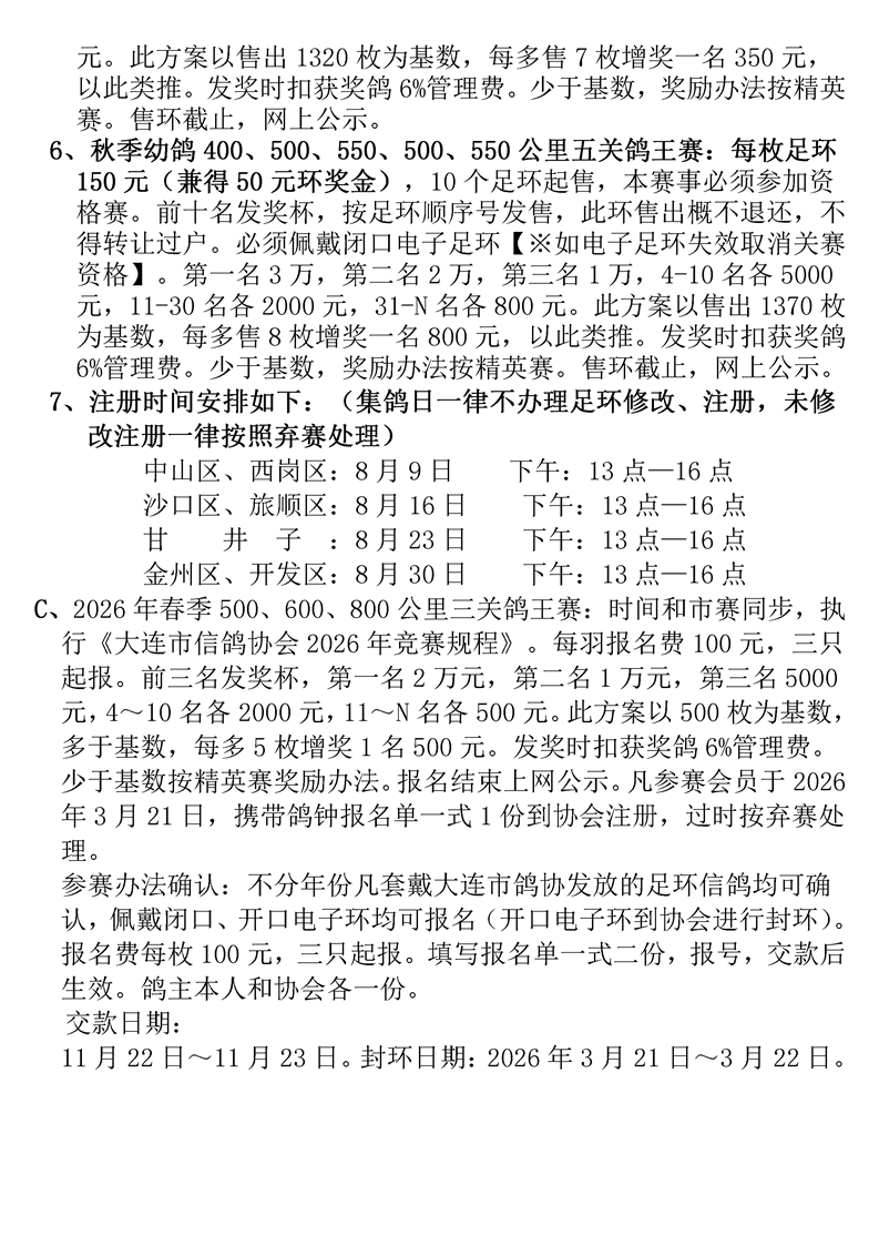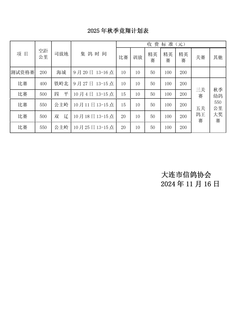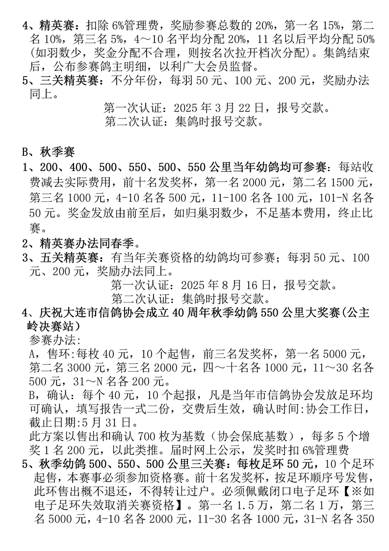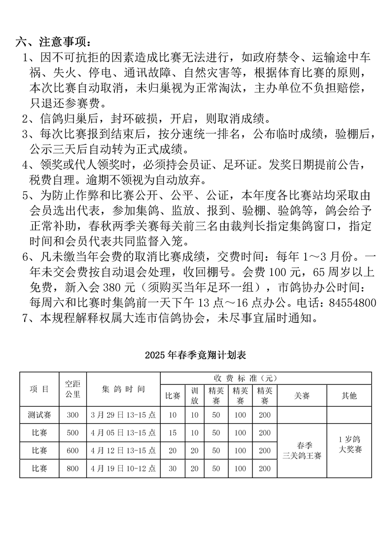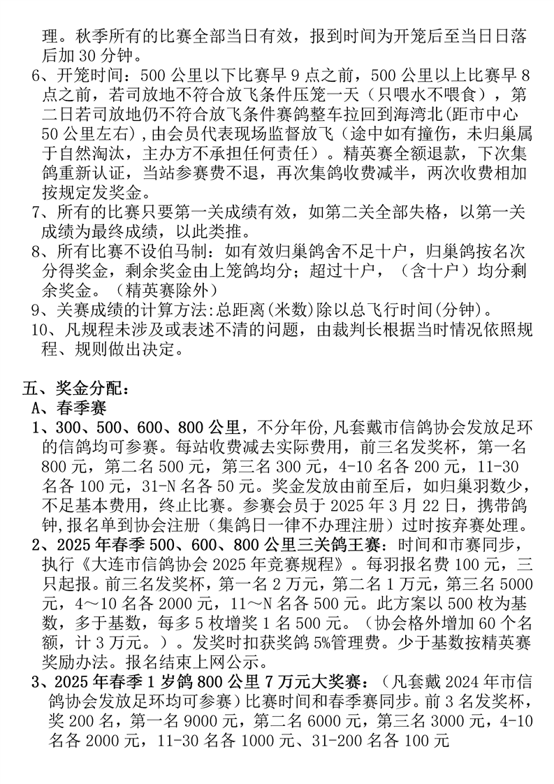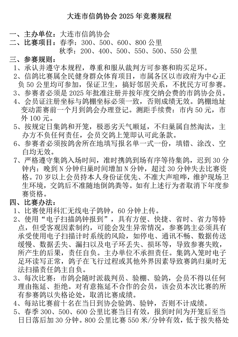 大连市信鸽协会2025年竞赛规程