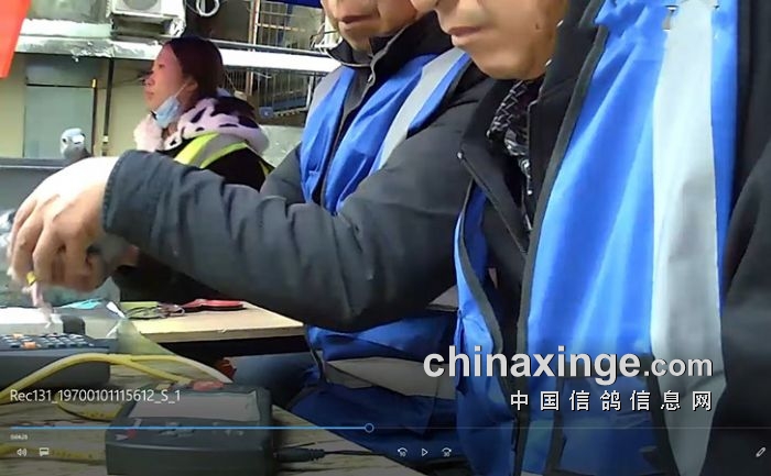 监控设备记录裁判员核对参赛鸽并加盖暗记章
