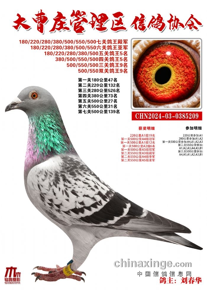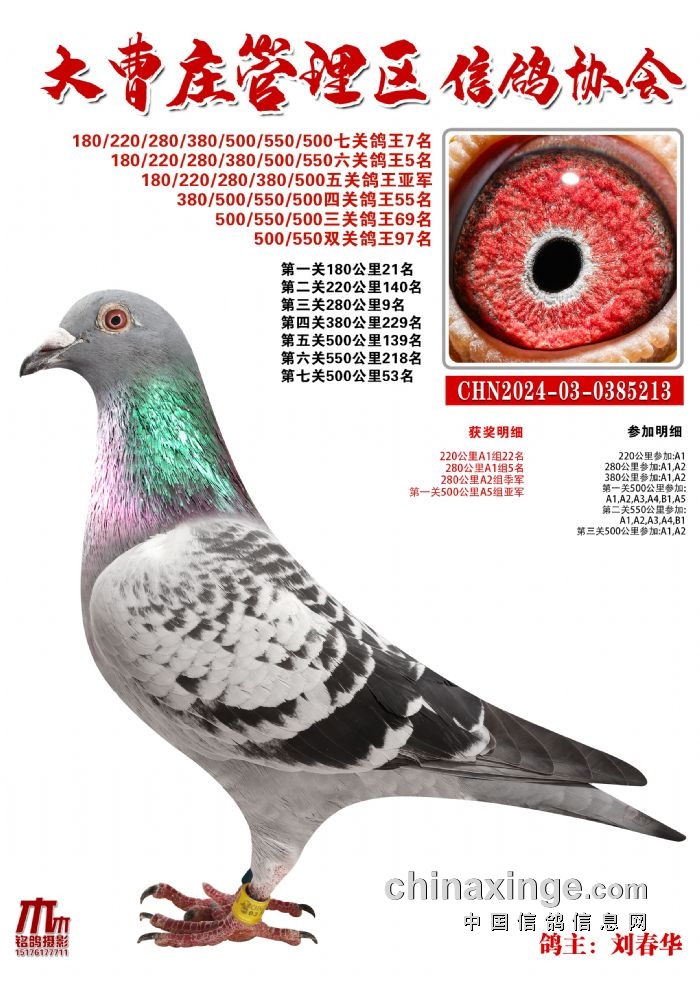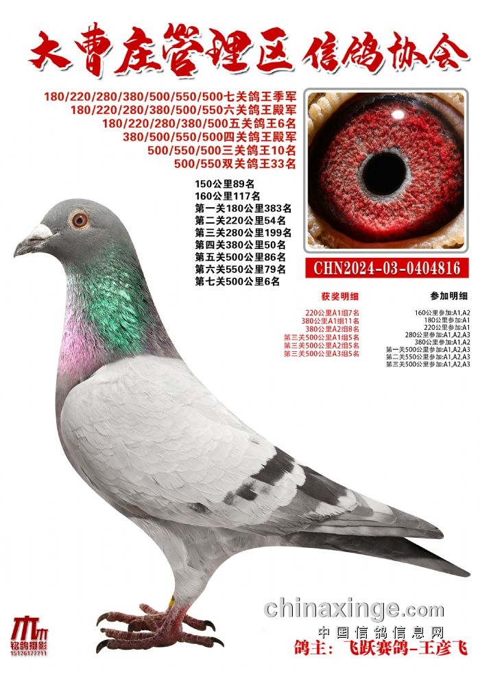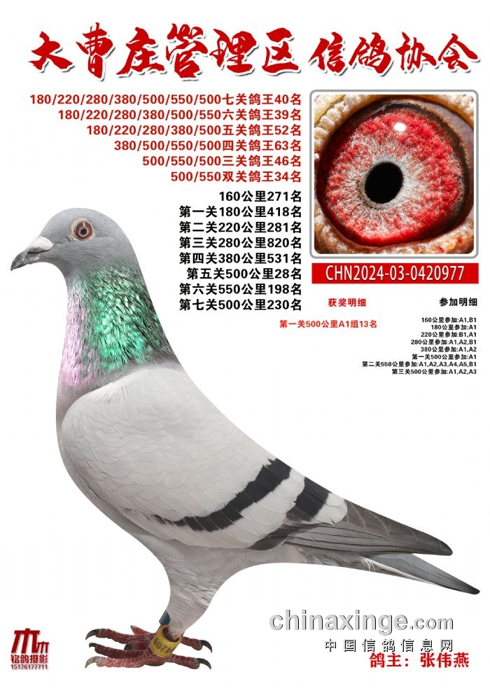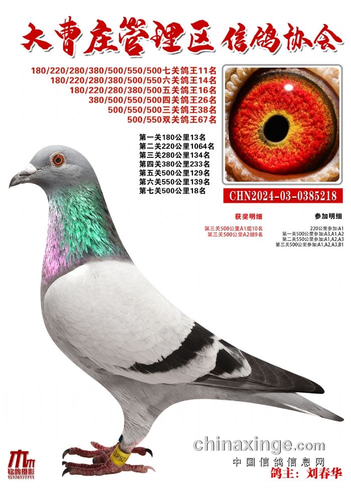 大曹庄鸽会25年秋220-280-340-380公里四关鸽王临时成绩