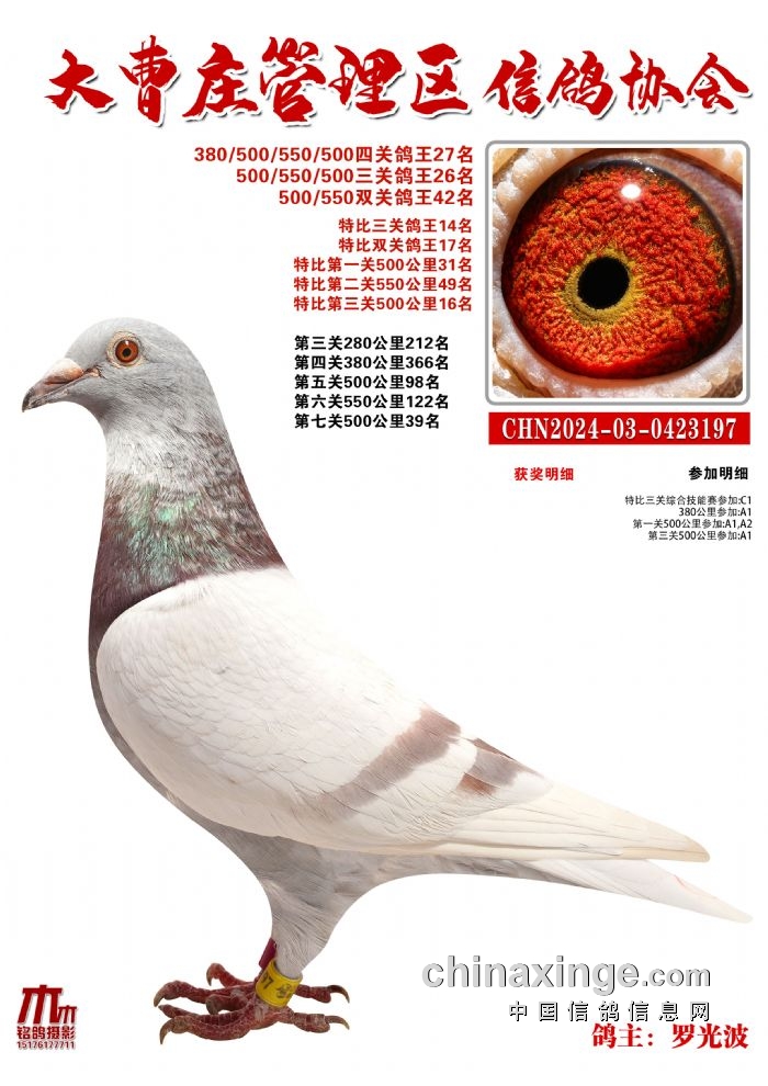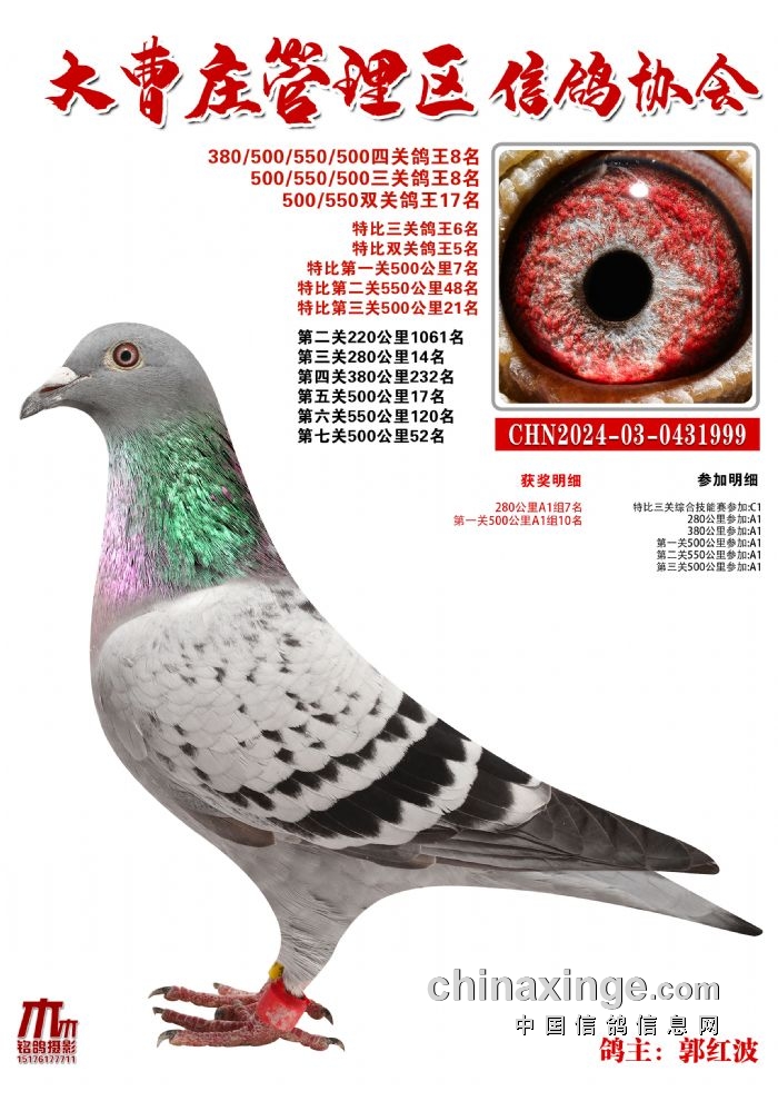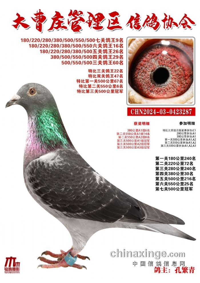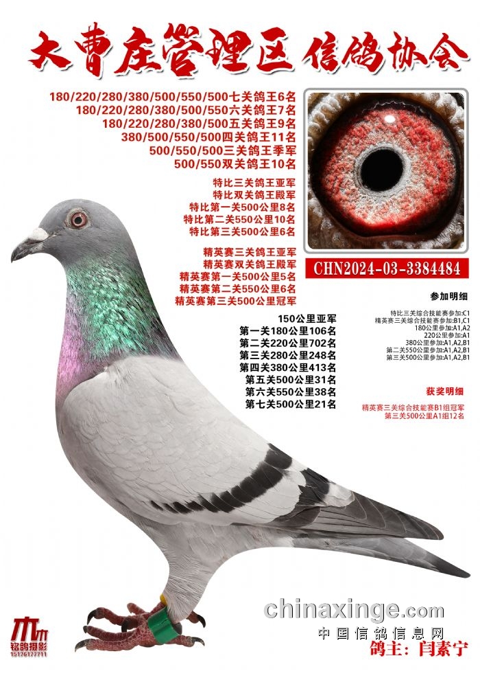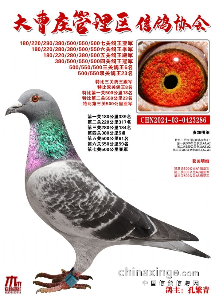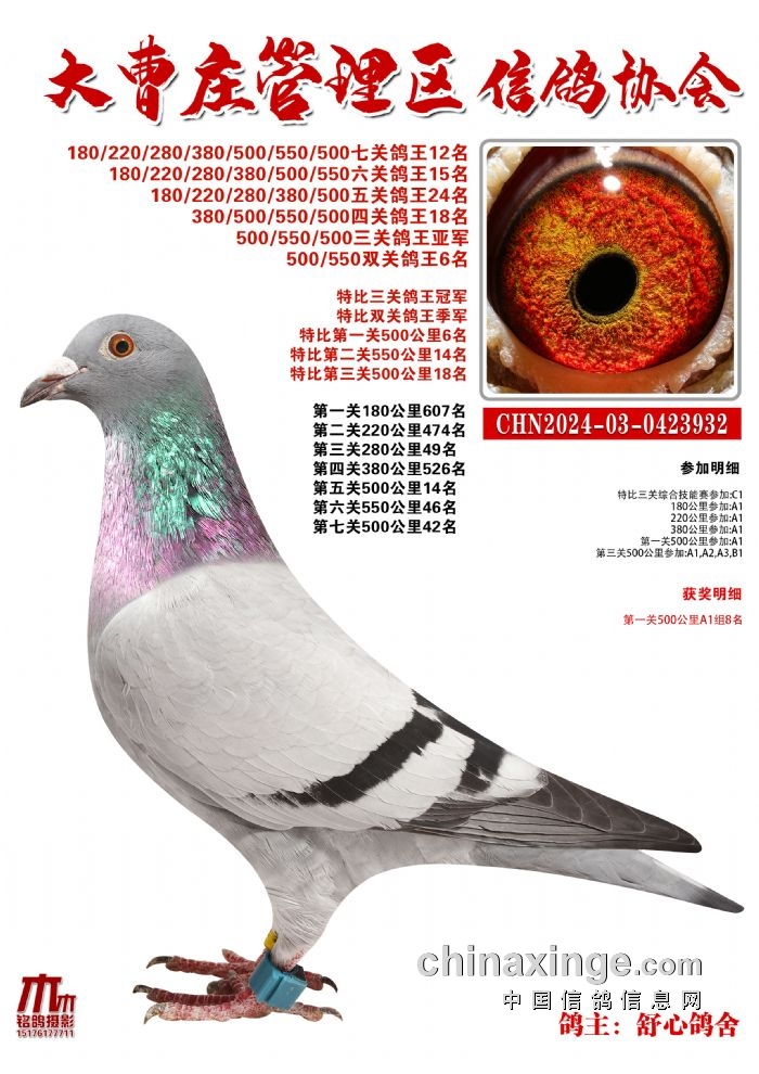 大曹庄鸽会25年秋220-280-340-380公里四关鸽王临时成绩