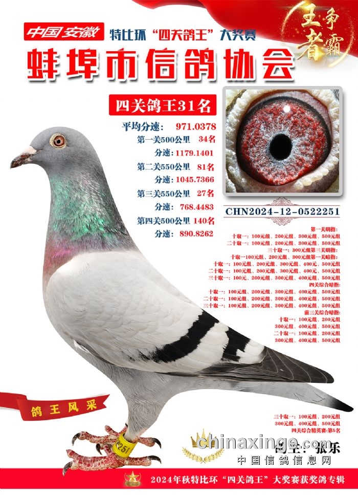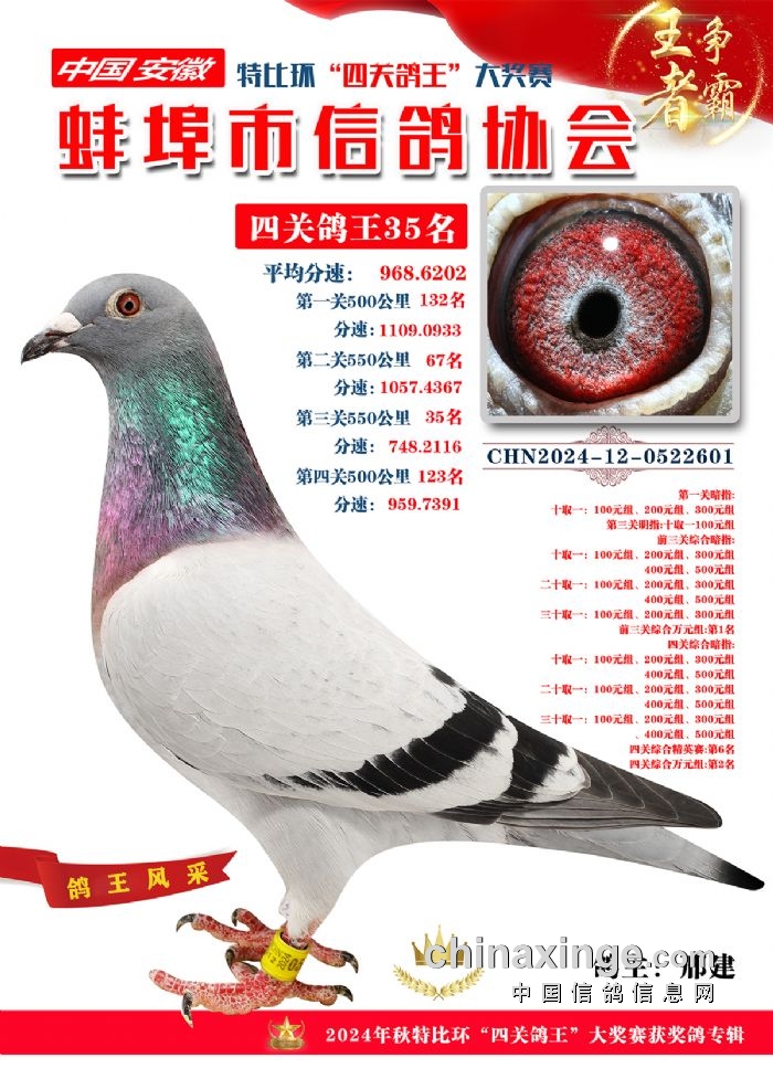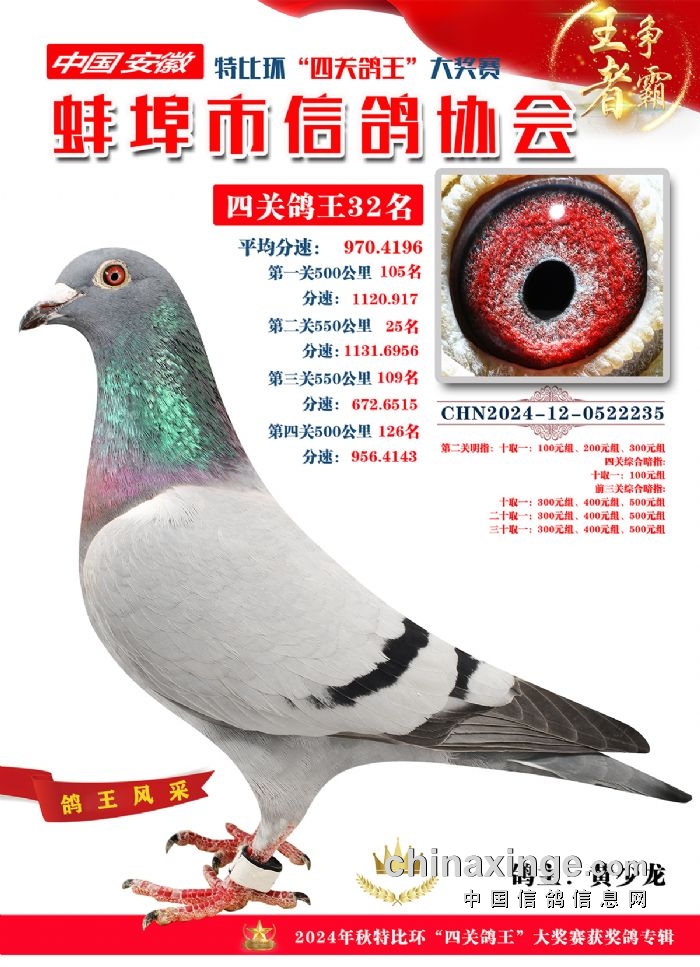 蚌埠精英赛鸽公司2025年秋季特比环“四关鸽王”、育种赛、精英赛及团体赛成绩