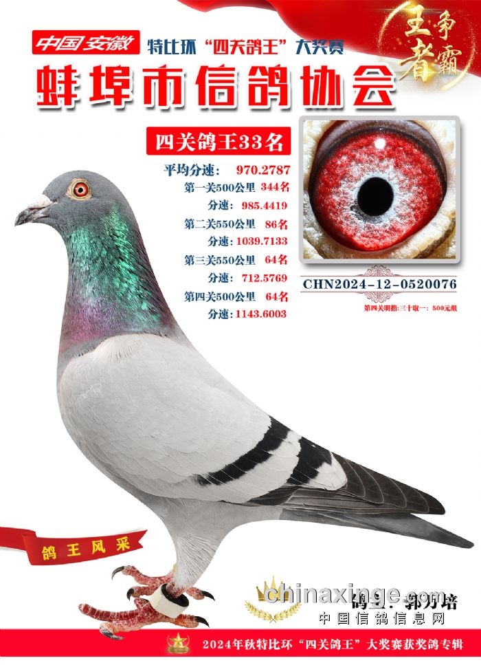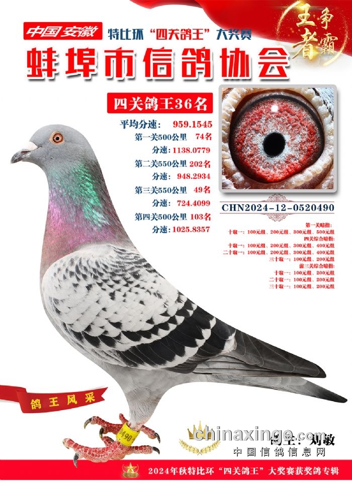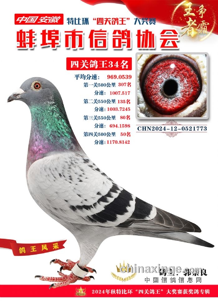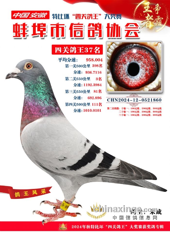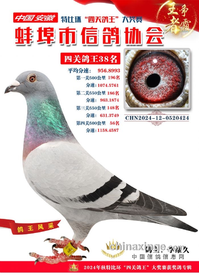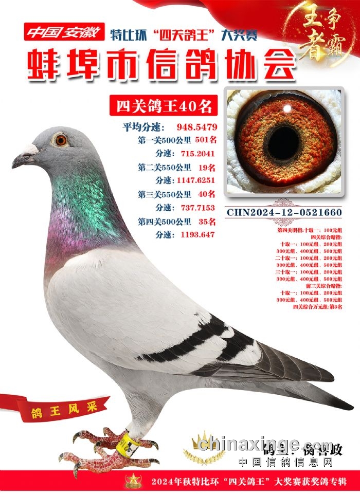 蚌埠市信鸽协会2024年秋季特比环“四关鸽王”靓照欣赏(31-40名)
