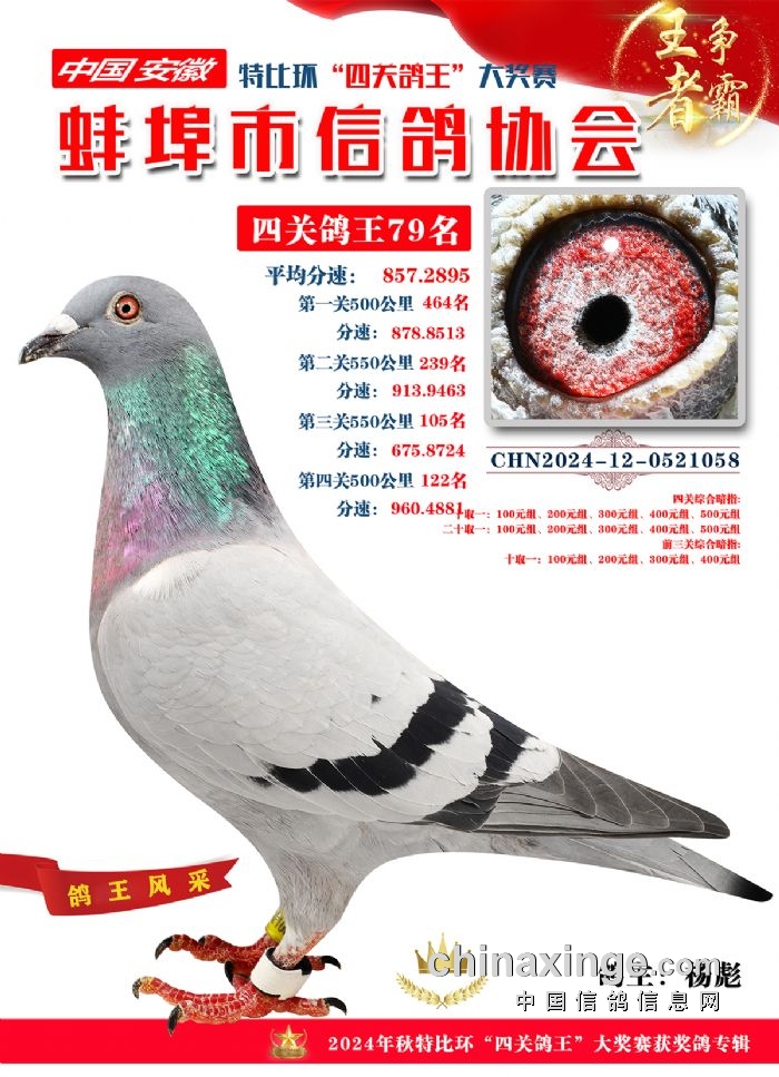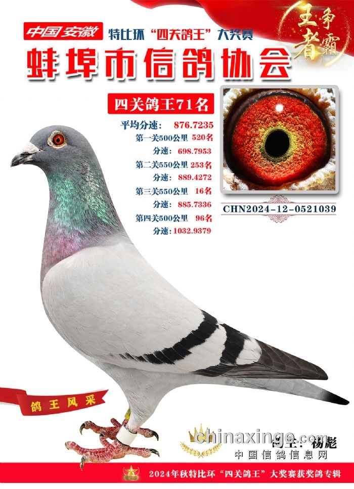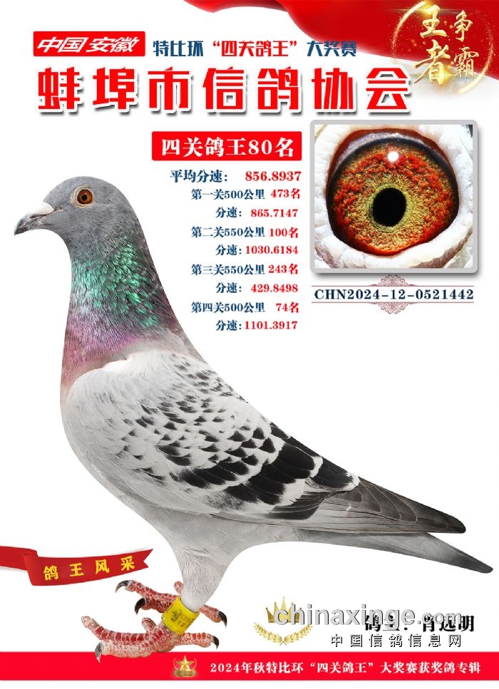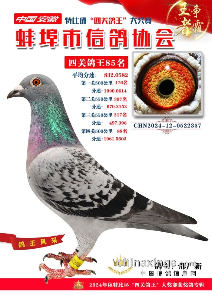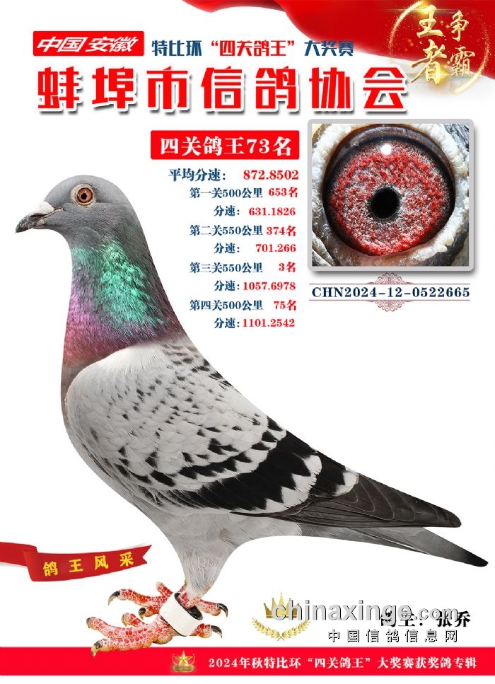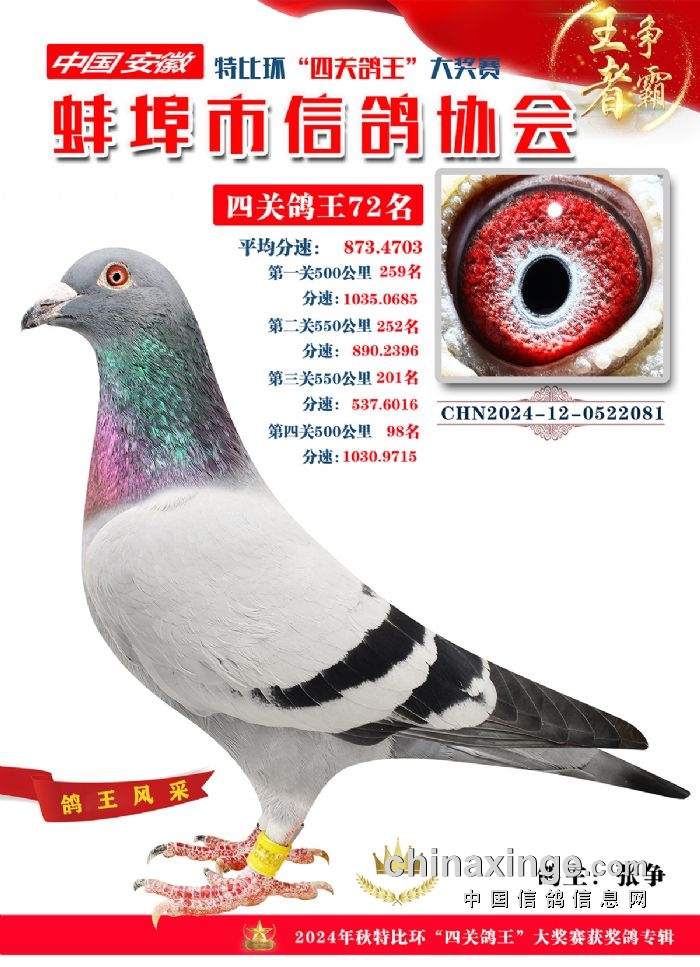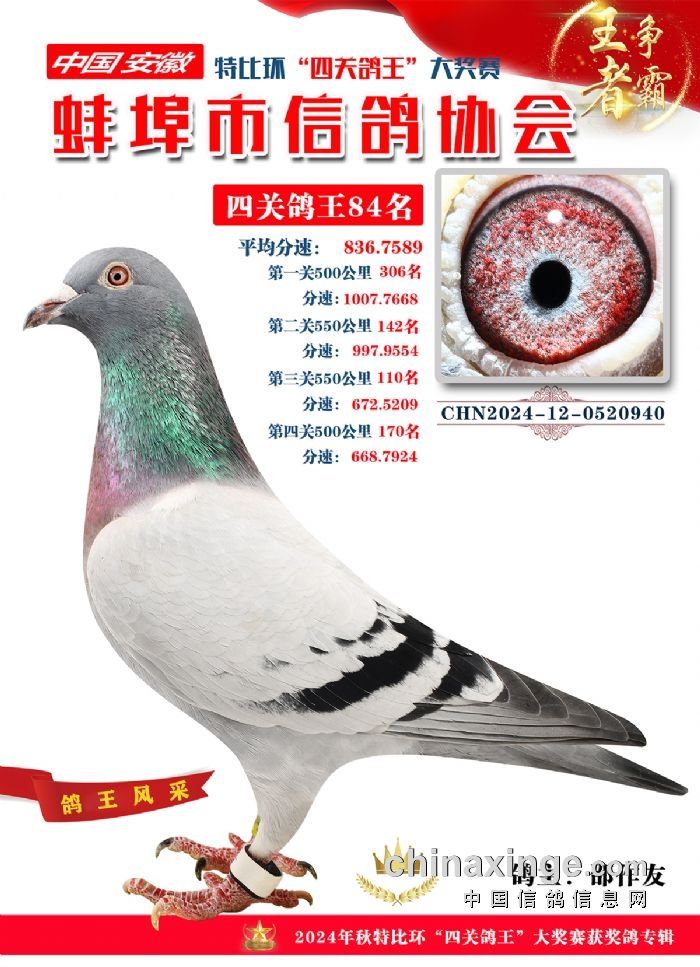 蚌埠市信鸽协会2024年秋季特比环“四关鸽王”靓照欣赏(71-85名)