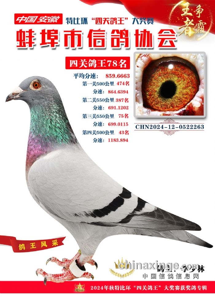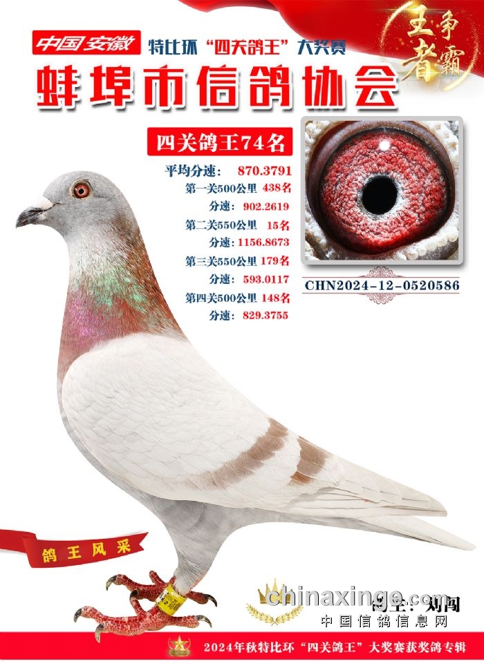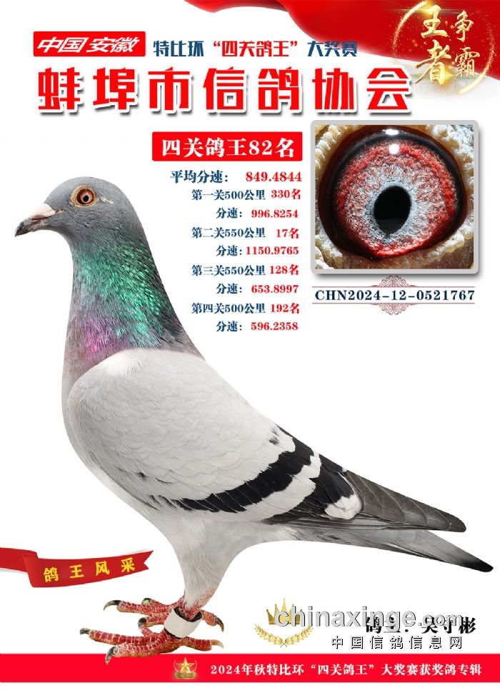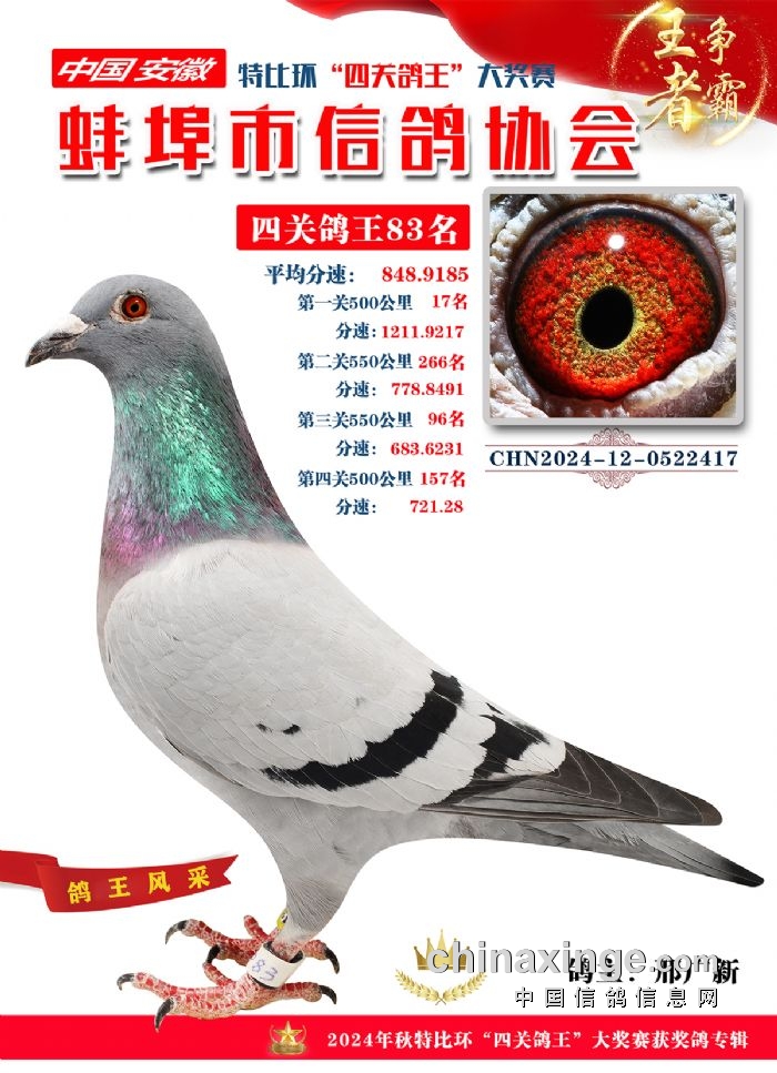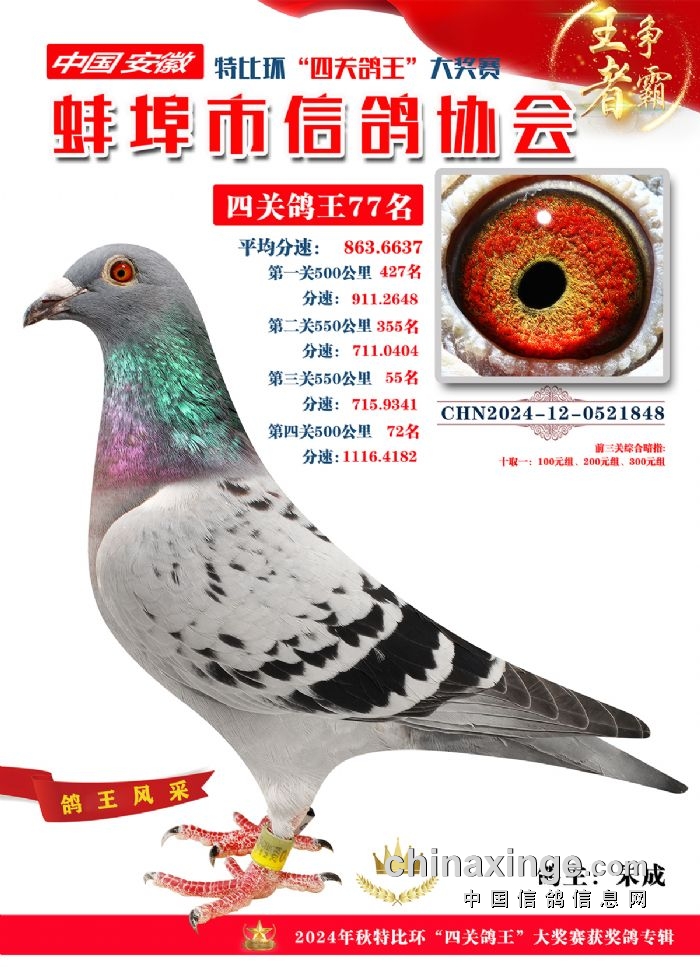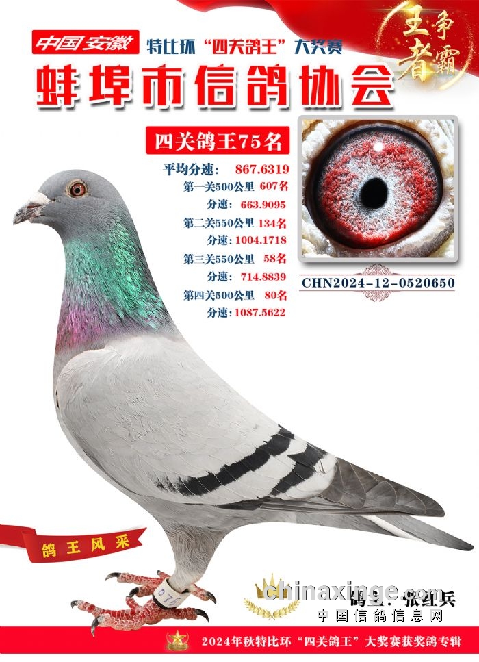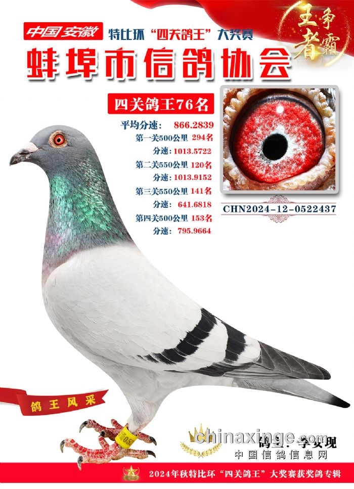 蚌埠市信鸽协会2024年秋季特比环“四关鸽王”靓照欣赏(71-85名)