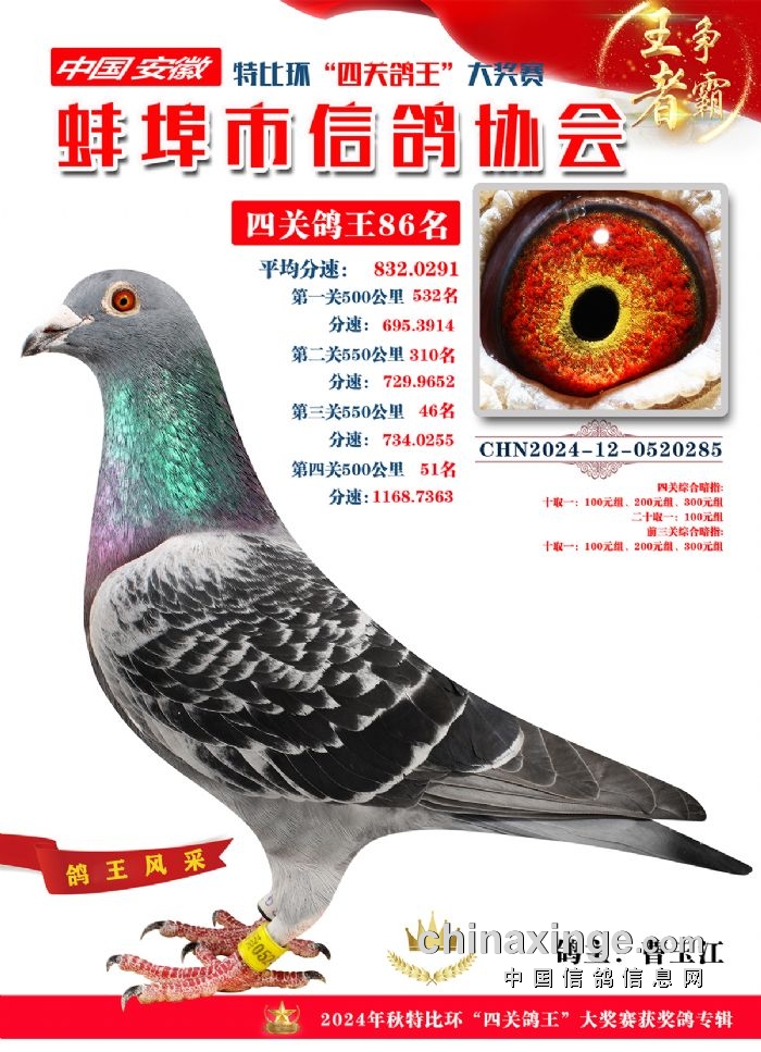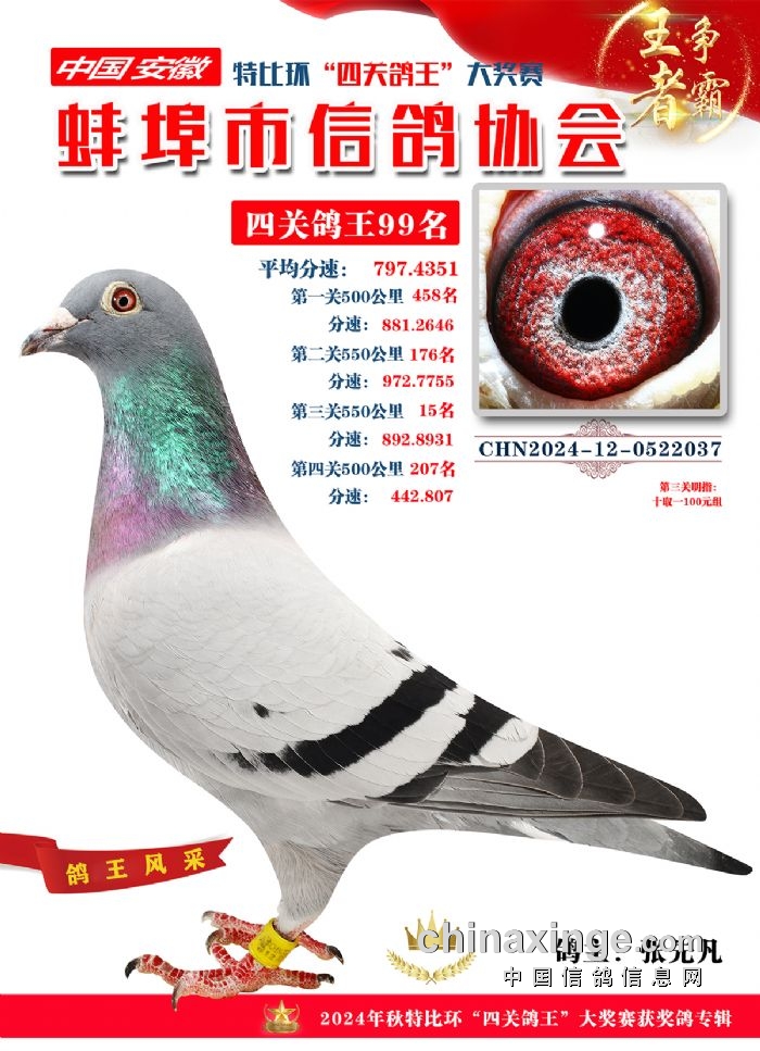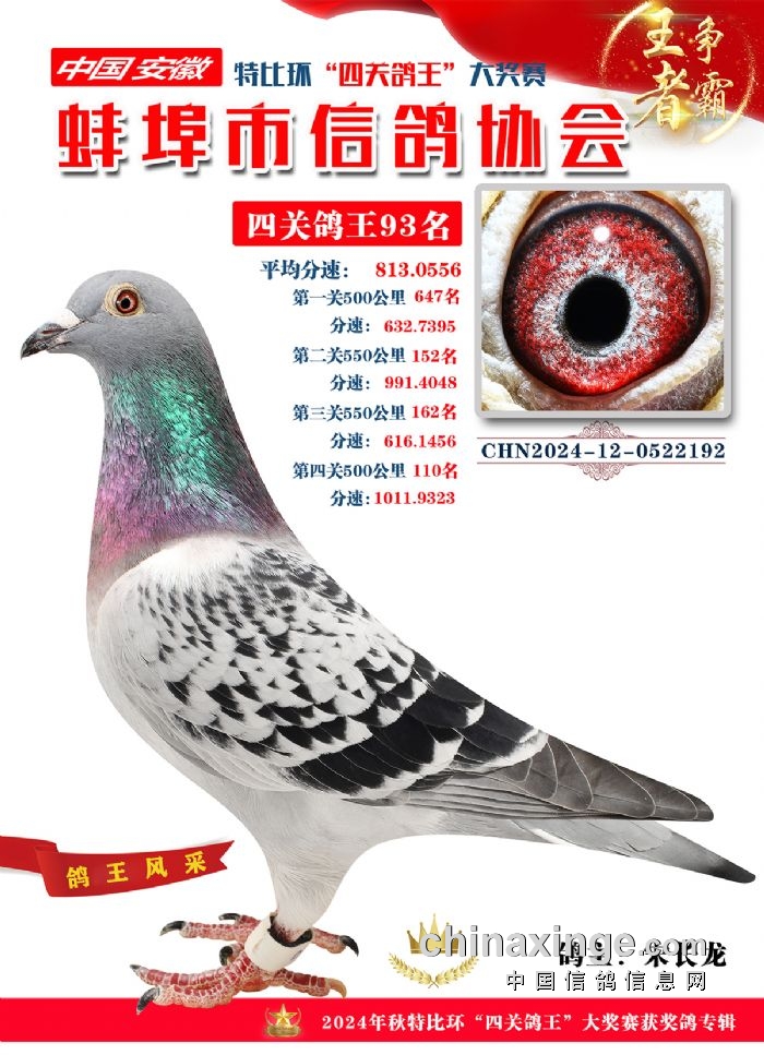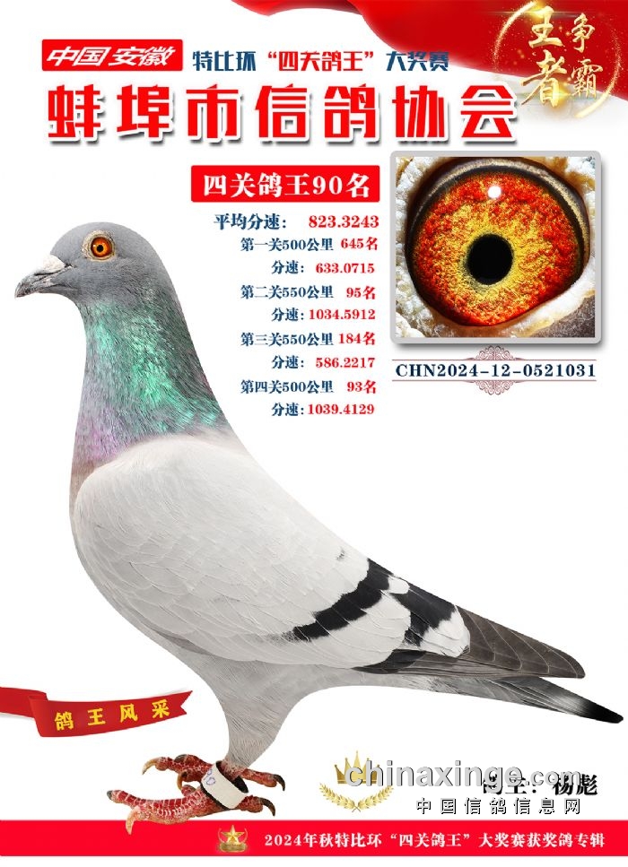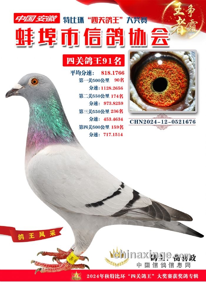 蚌埠市信鸽协会2024年秋季特比环“四关鸽王”靓照欣赏(86-100名)
