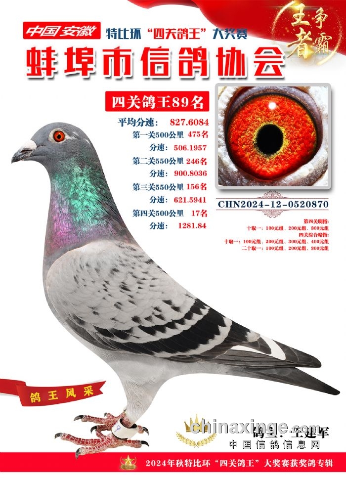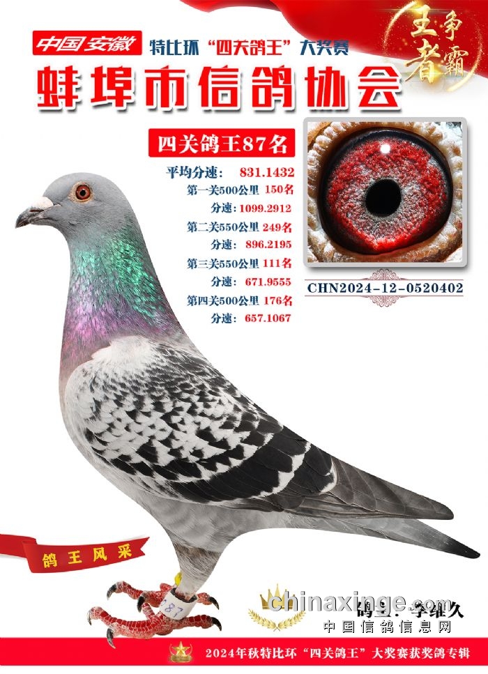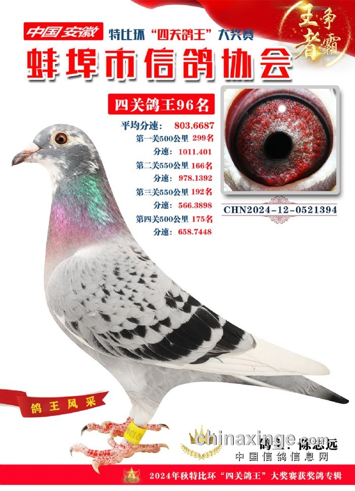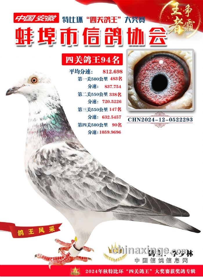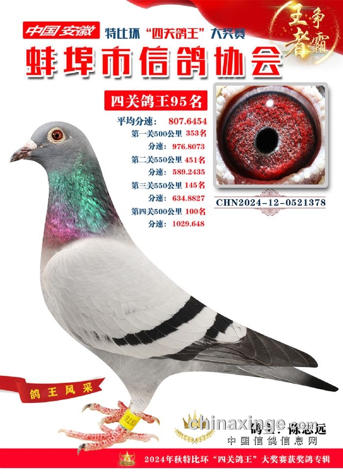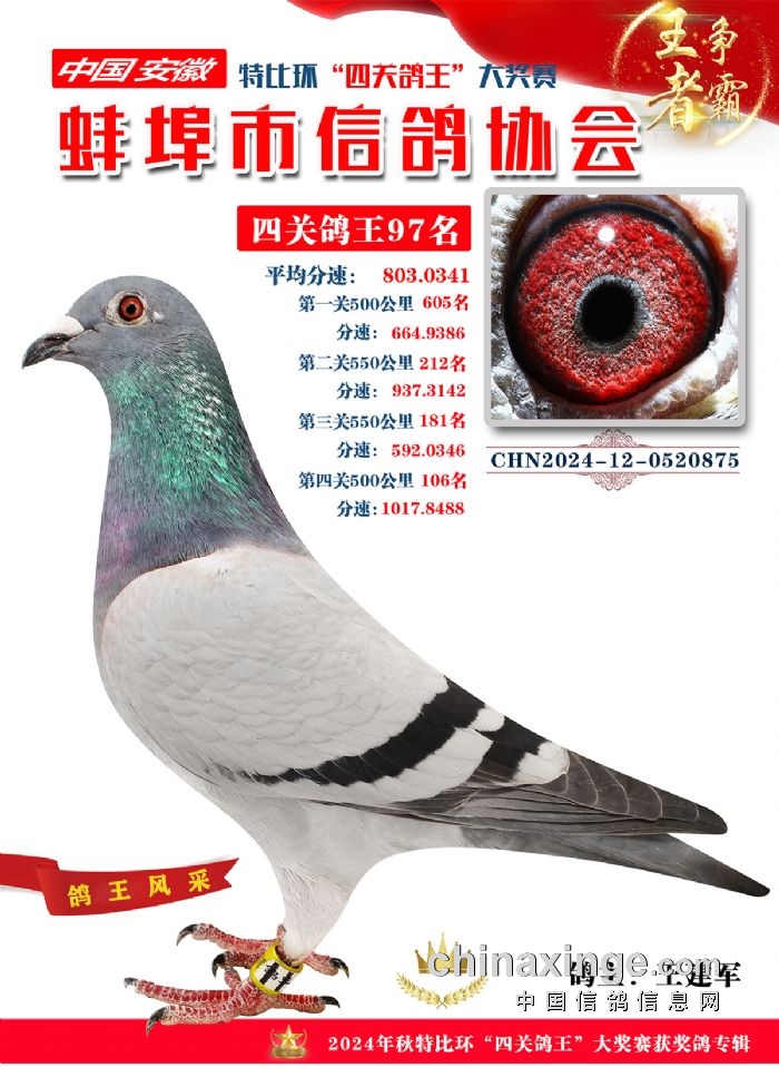 蚌埠市信鸽协会2024年秋季特比环“四关鸽王”靓照欣赏(86-100名)