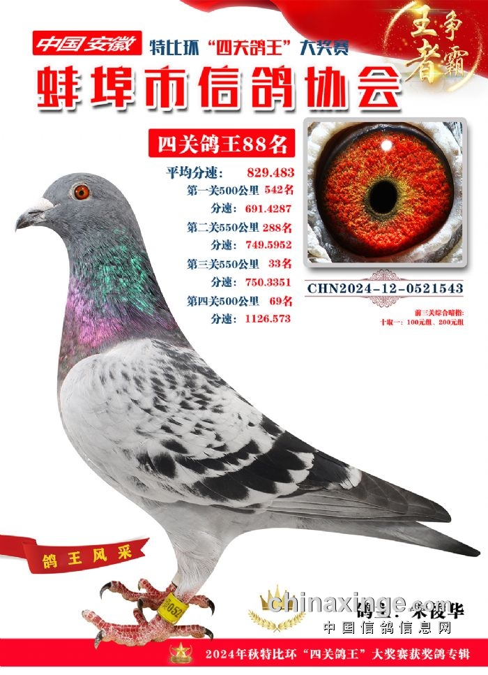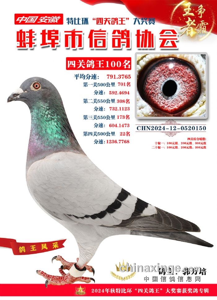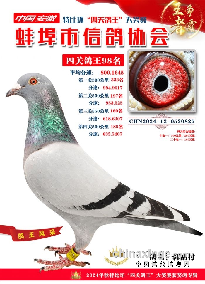 蚌埠精英赛鸽公司2025年秋季特比环“四关鸽王”成绩