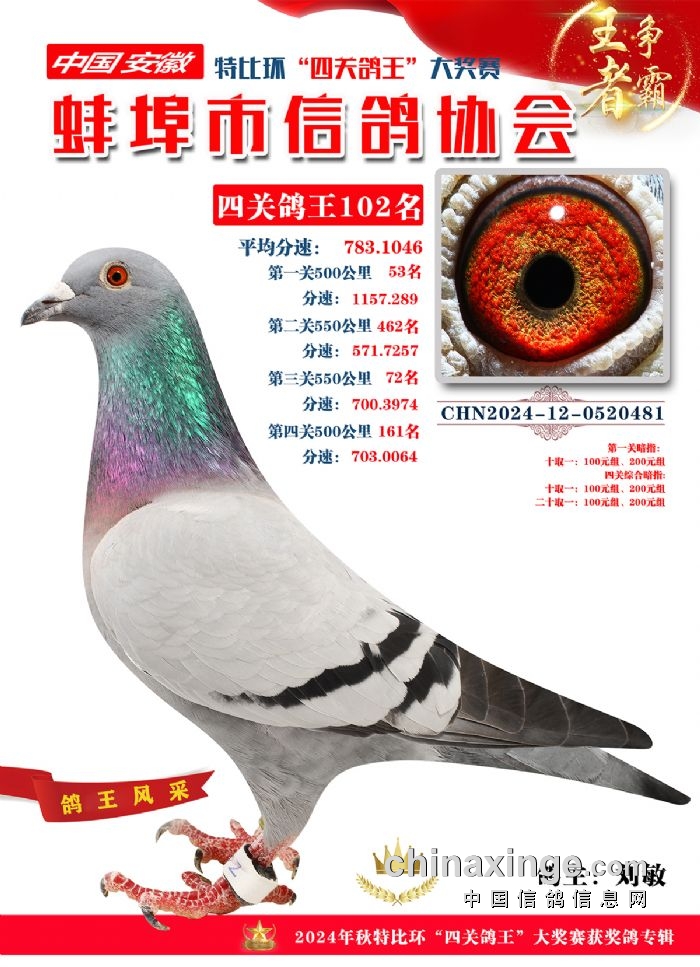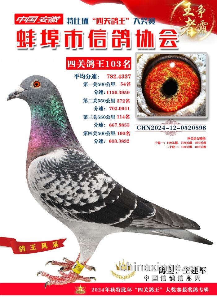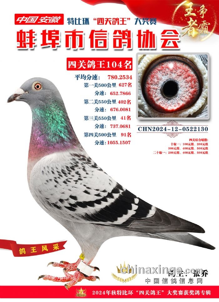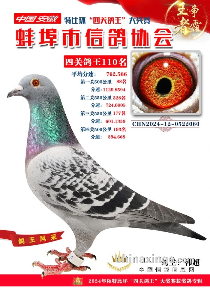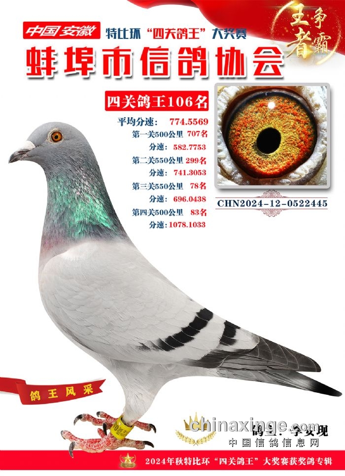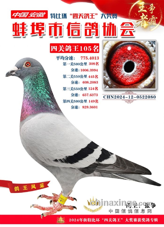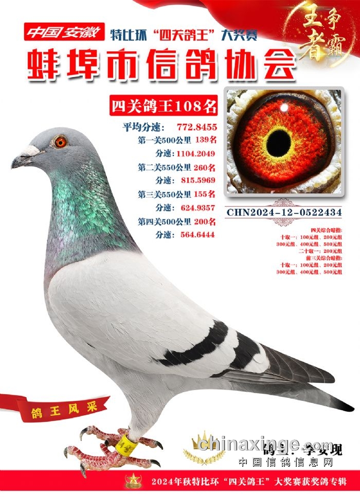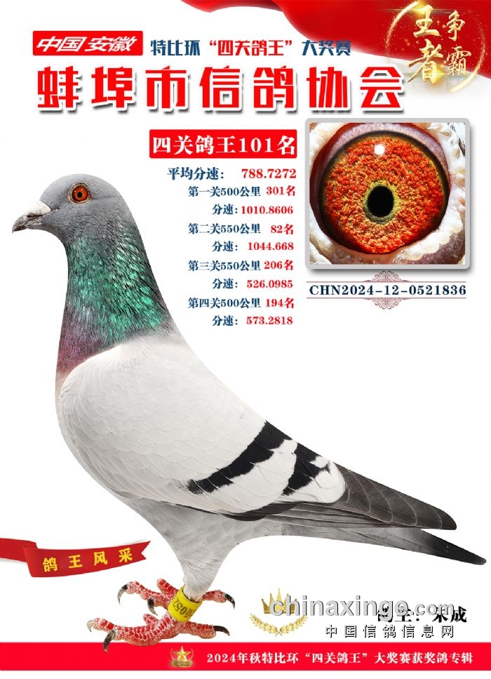 蚌埠市信鸽协会2024年秋季特比环“四关鸽王”靓照欣赏(101-110名)