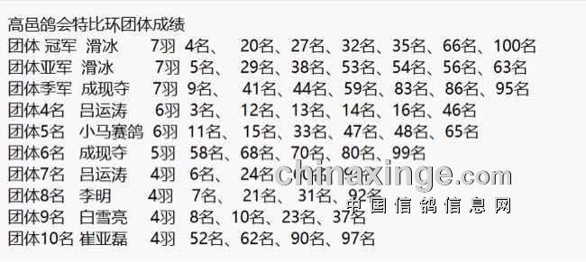 高邑鸽会特比环第三关普赛前十名验棚照片