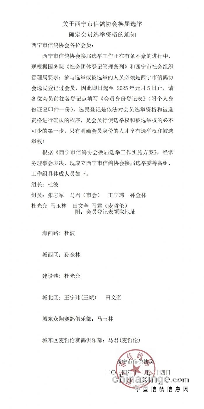 关于西宁市信鸽协会2025年秋季特比环赛事结束的通知