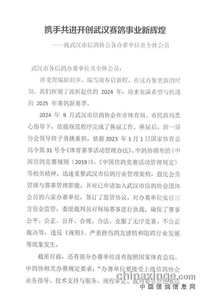 关于武汉市信鸽协会2025年度裁判员培训及注册复训的通知