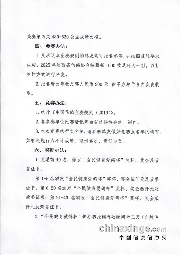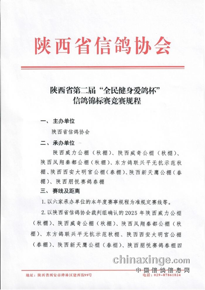 陕西省第二届“全民健身爱鸽杯” 信鸽锦标赛竞赛规程