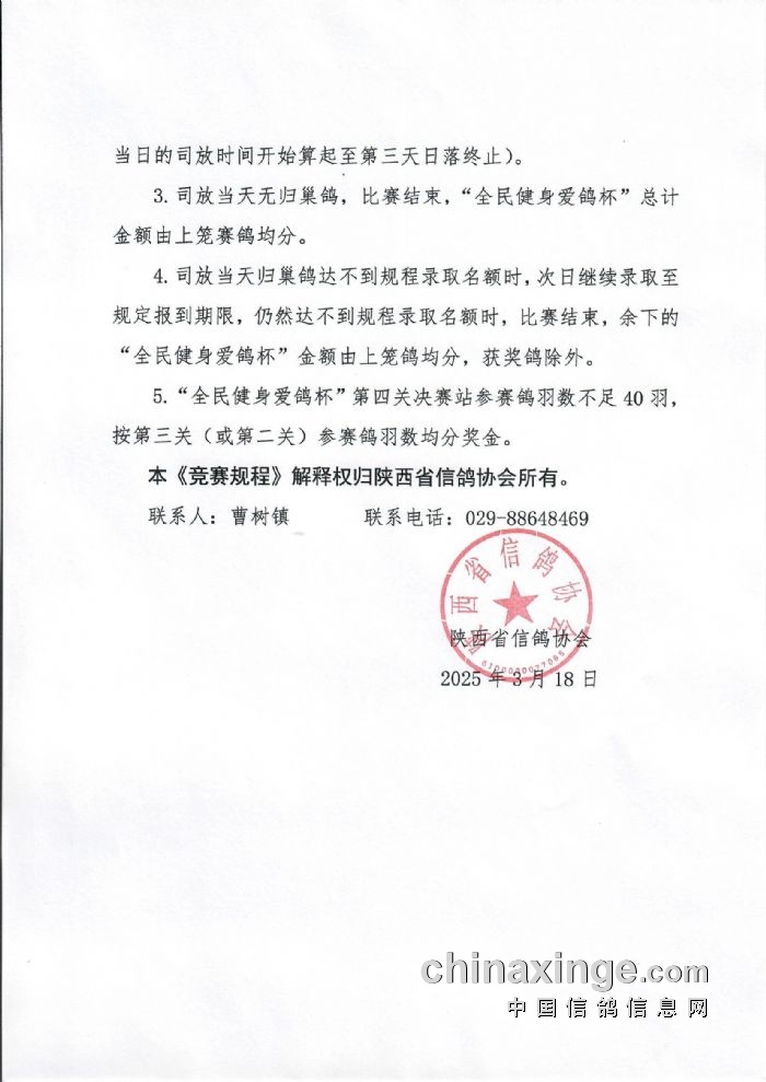 关于印发《2025年陕西省信鸽公棚竞赛规程 模板(试行)》的通知