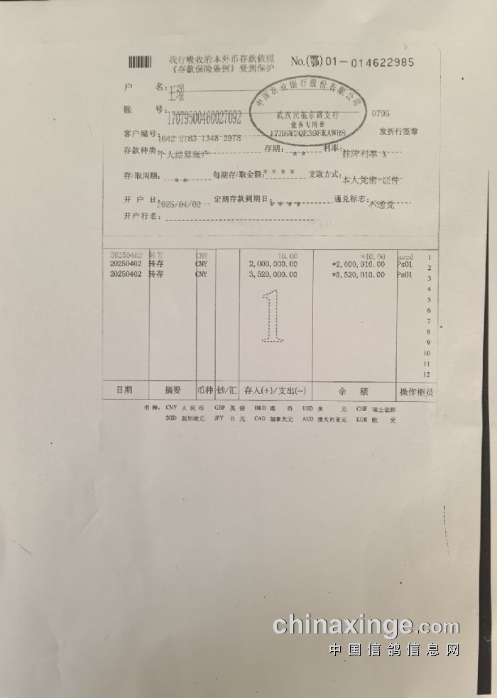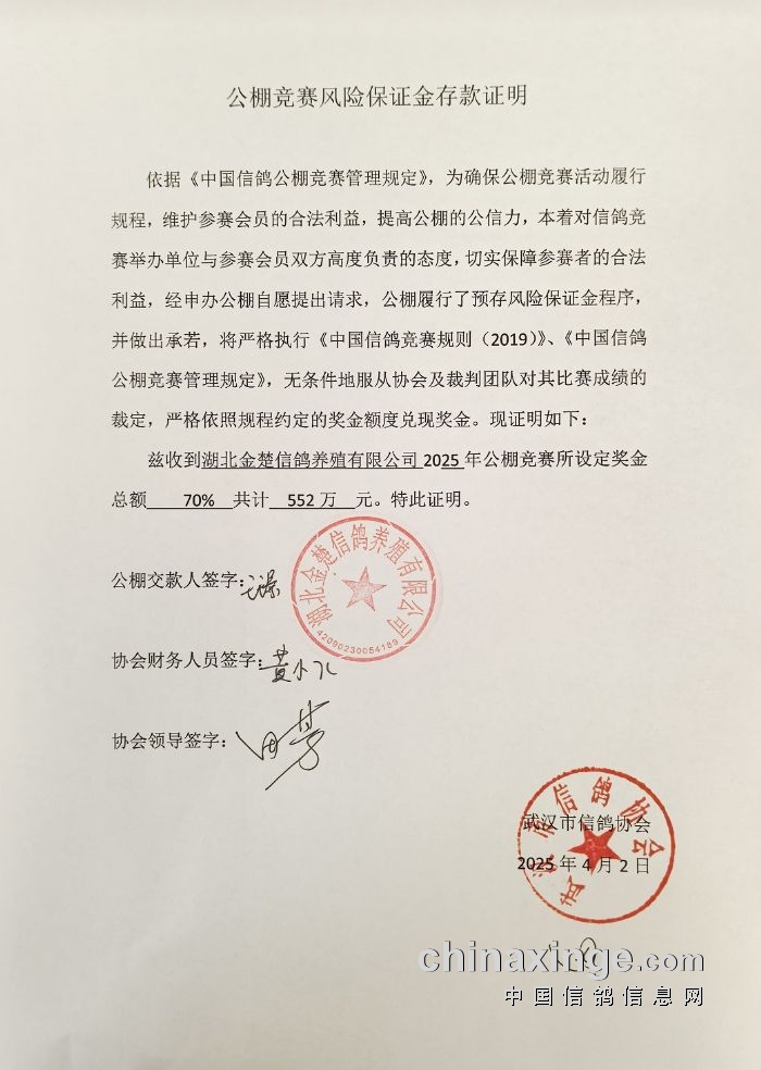 湖北金楚信鸽养殖有限公司春棚三方资金共管公告