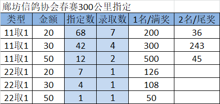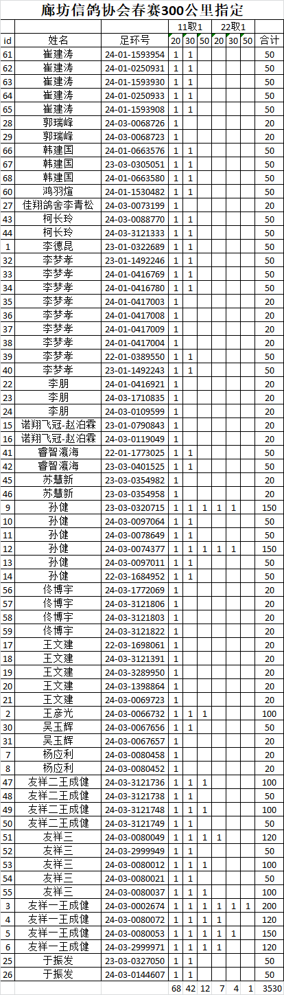 廊坊市信鸽协会2025年春季300公里比赛(三关赛第一关)指定明细(以原始单据为准)