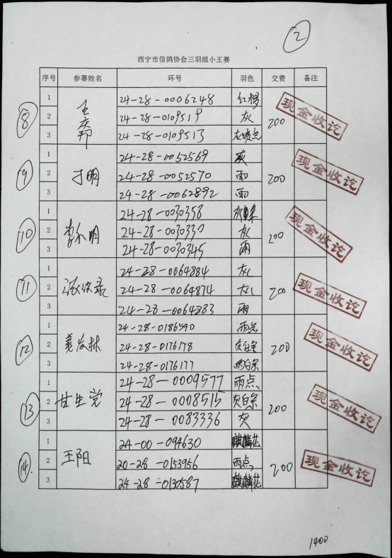 西宁市信鸽协会2025年秋季特比环四关综合赛三次交费大环名次表