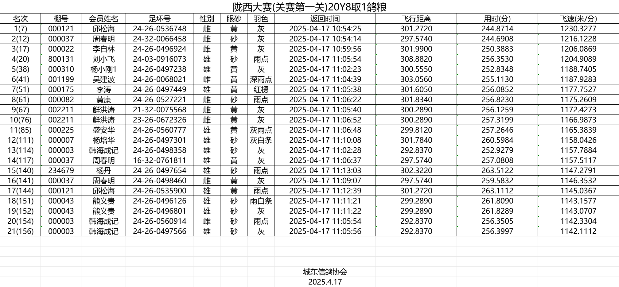 城东信鸽协会400KM临洮大赛20Y10取1粮