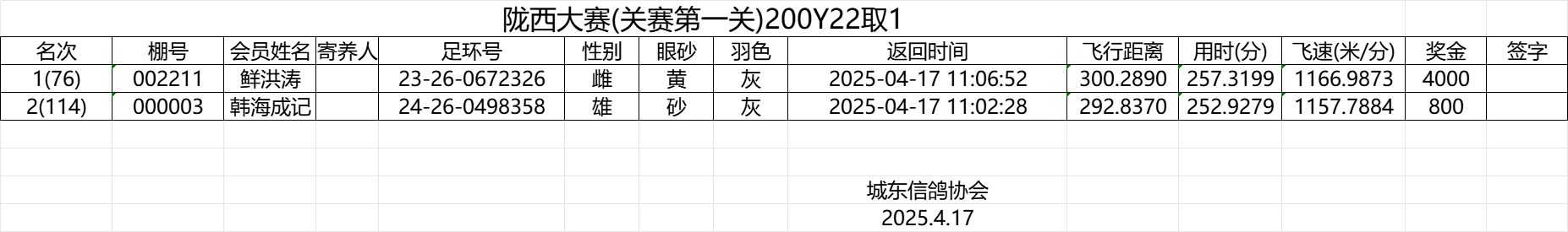 城东信鸽协会400KM临洮大赛20Y10取1粮