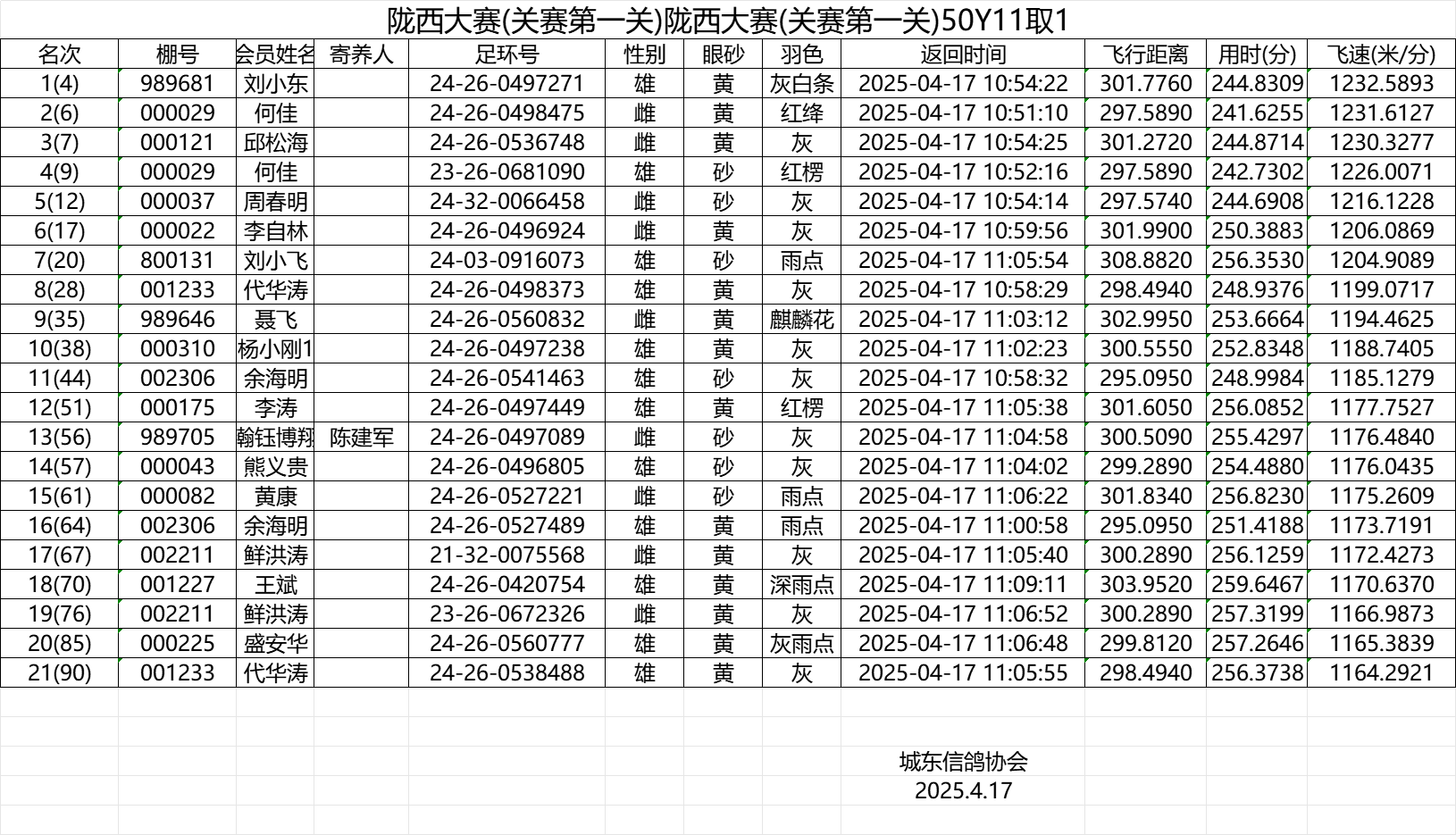 城东信鸽协会400KM临洮大赛20Y10取1粮