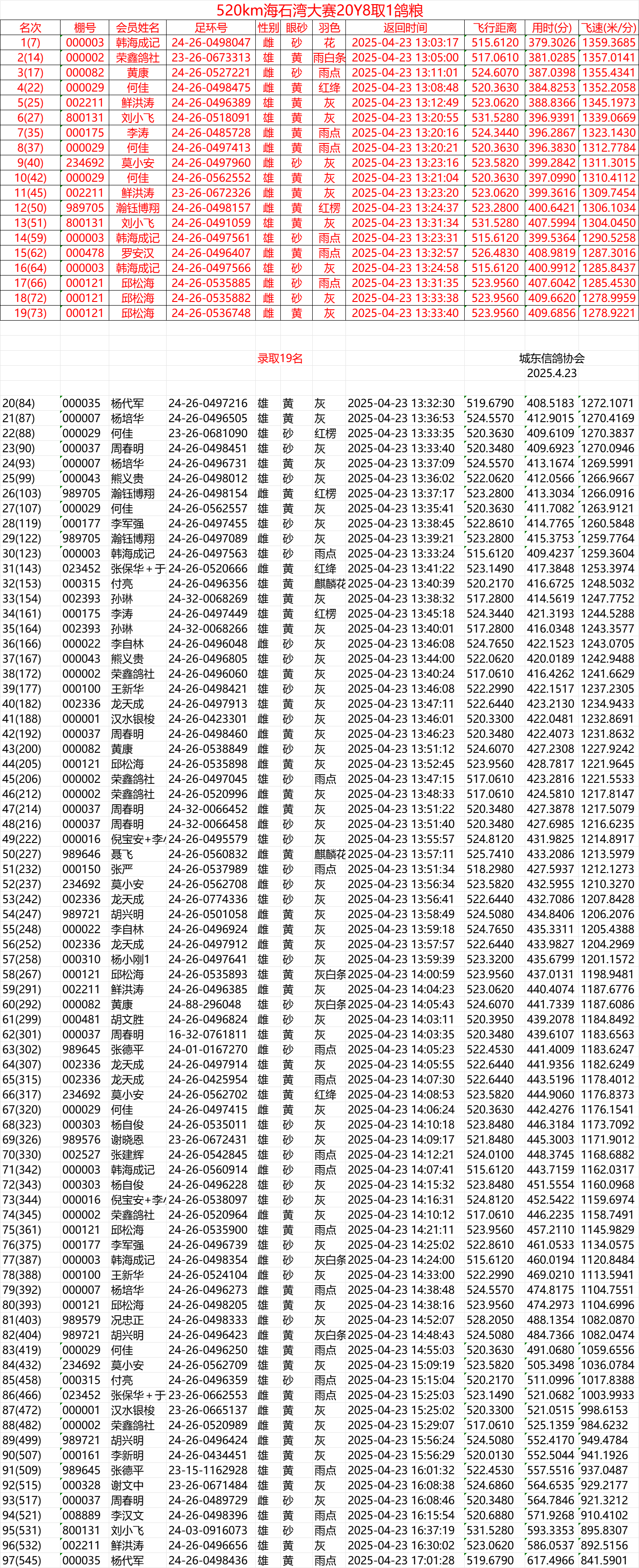 城东信鸽协会400KM临洮大赛20Y10取1粮