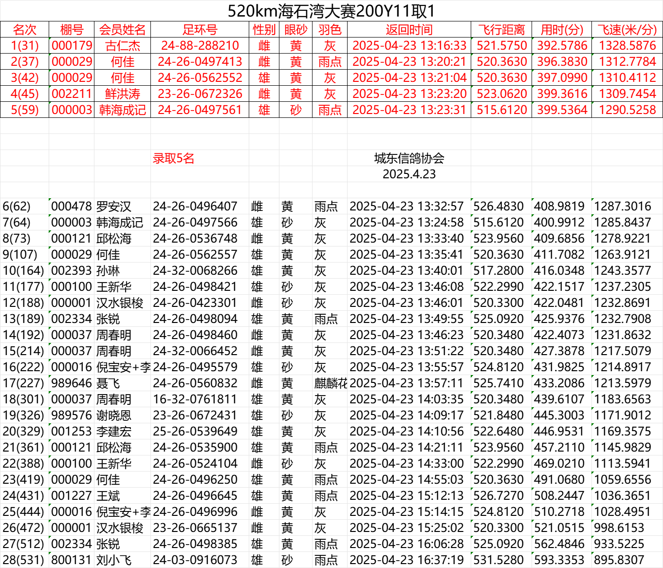 城东信鸽协会400KM临洮大赛20Y10取1粮