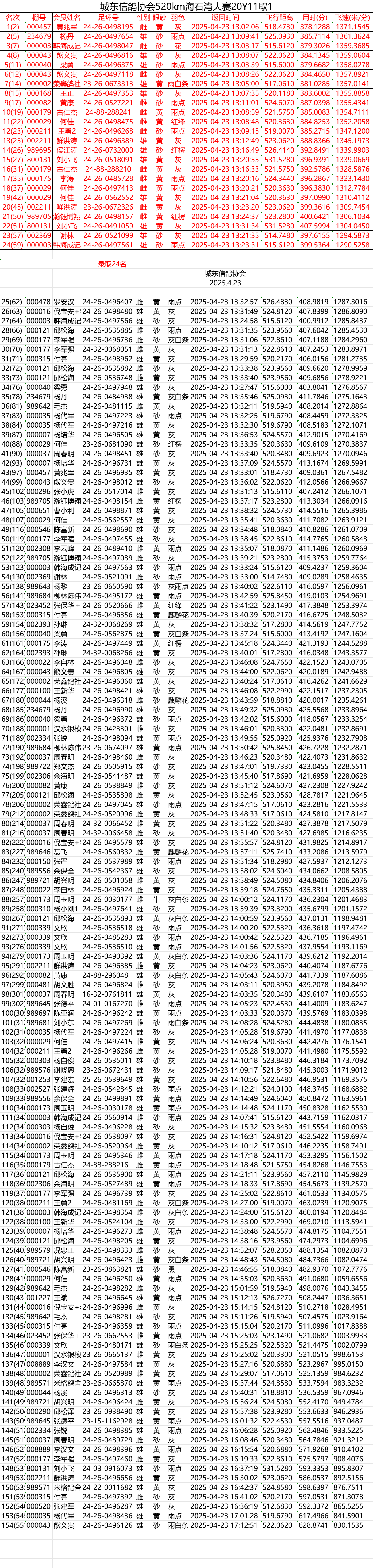 城东信鸽协会520km海石湾大赛20Y11取1.