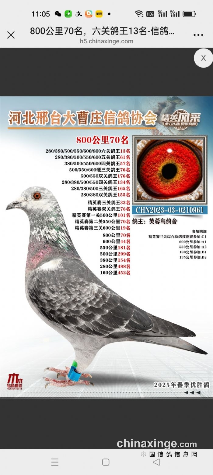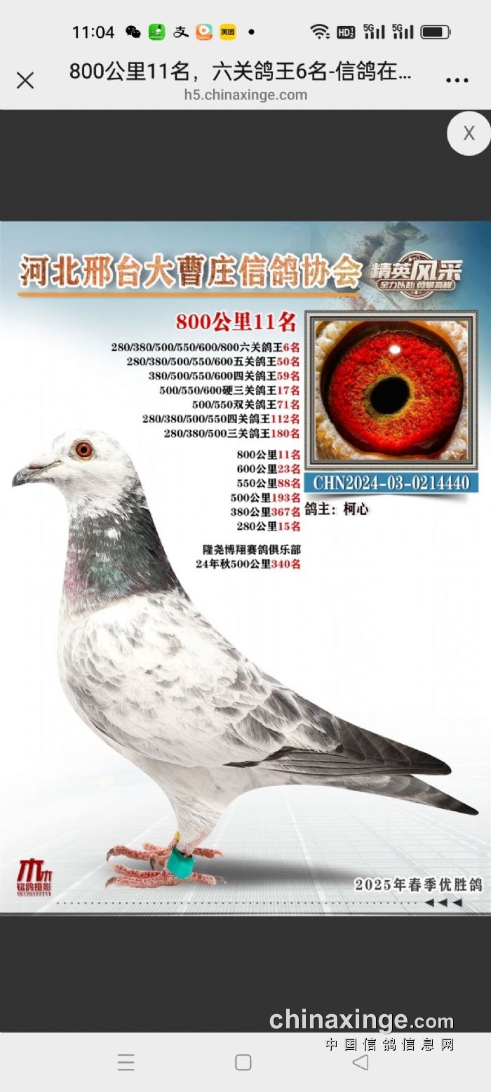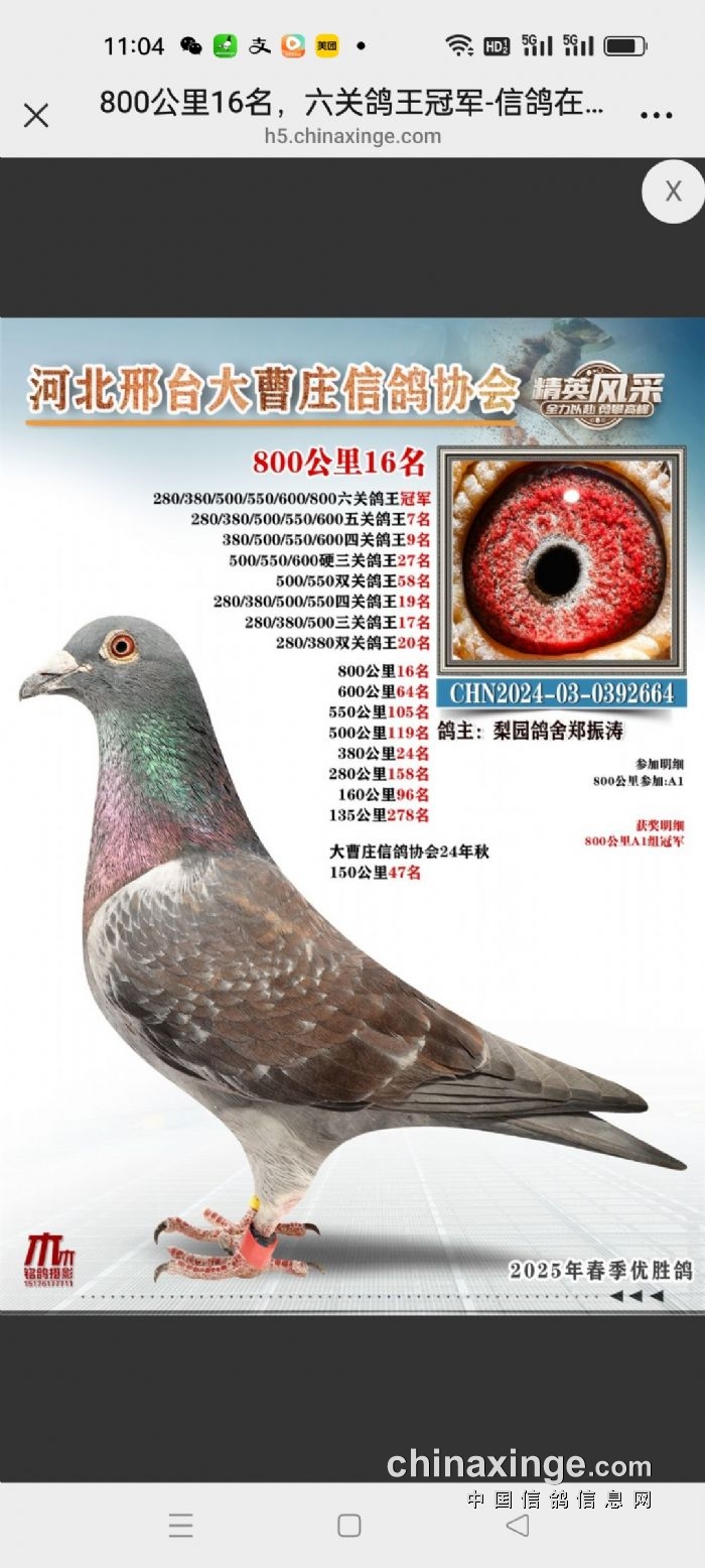 大曹庄鸽会25年秋220-280-340-380公里四关鸽王临时成绩