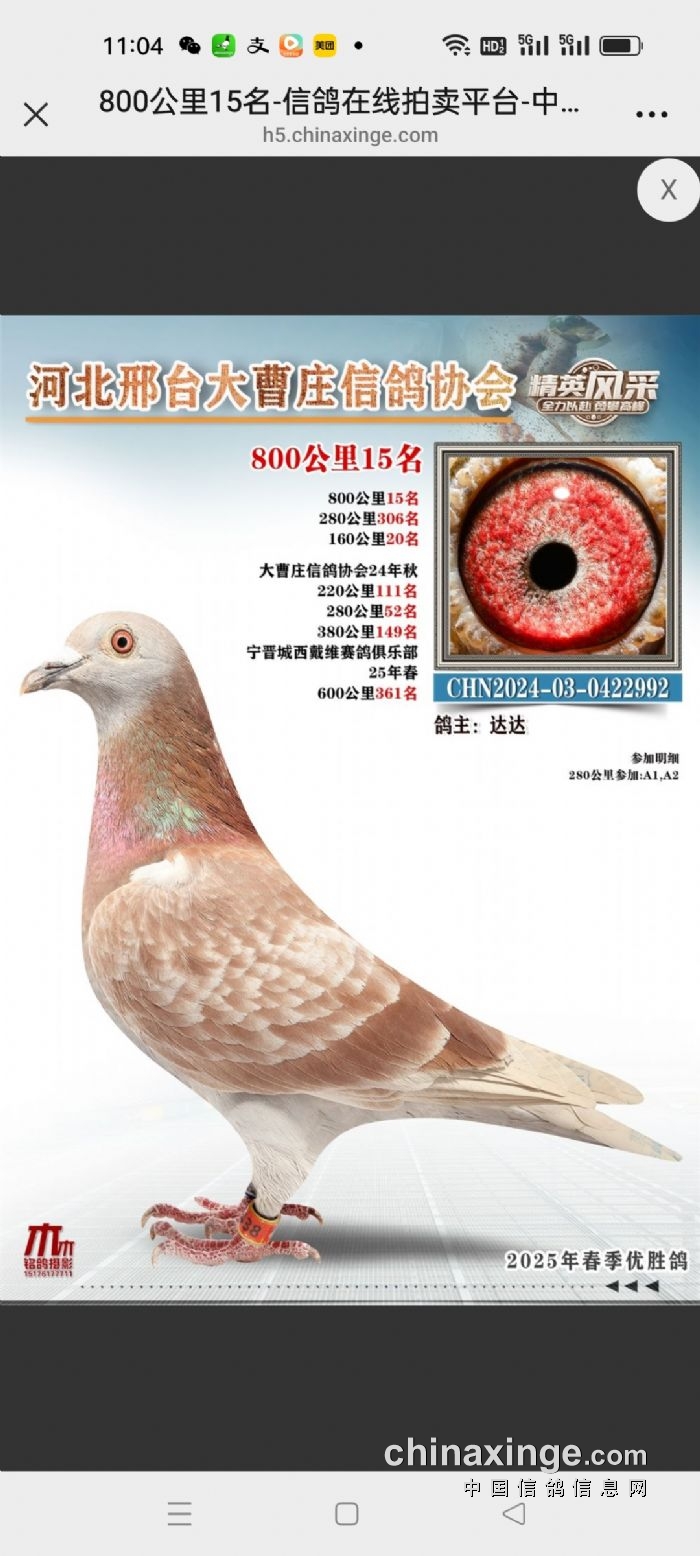 大曹庄鸽会25年春成绩鸽拍卖中