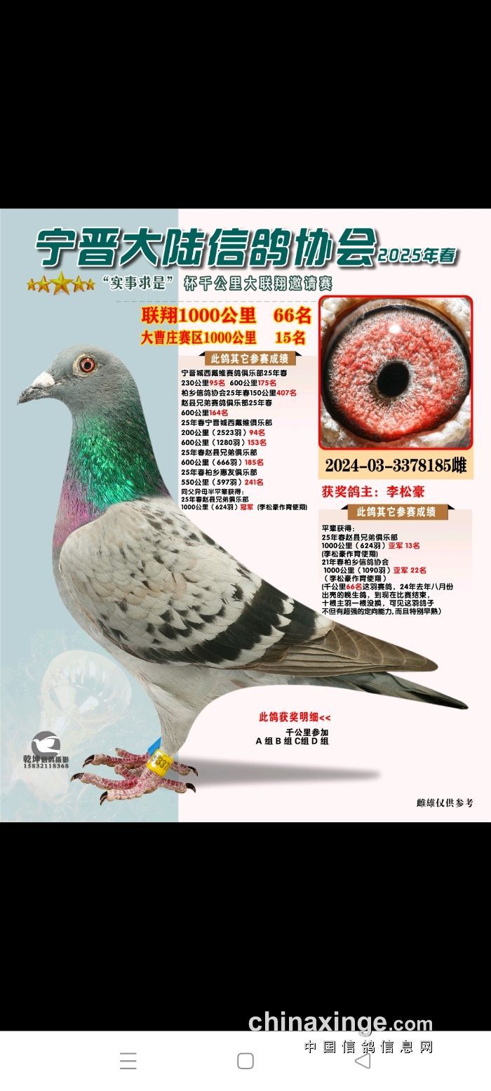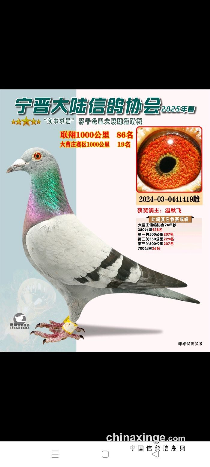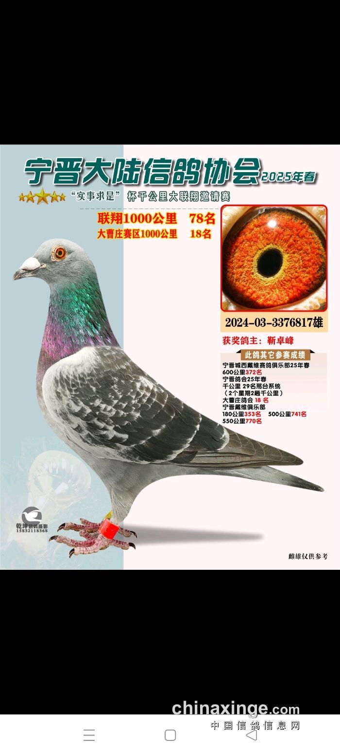 大曹庄鸽会 2025 年春 千公里联翔成绩鸽靓照