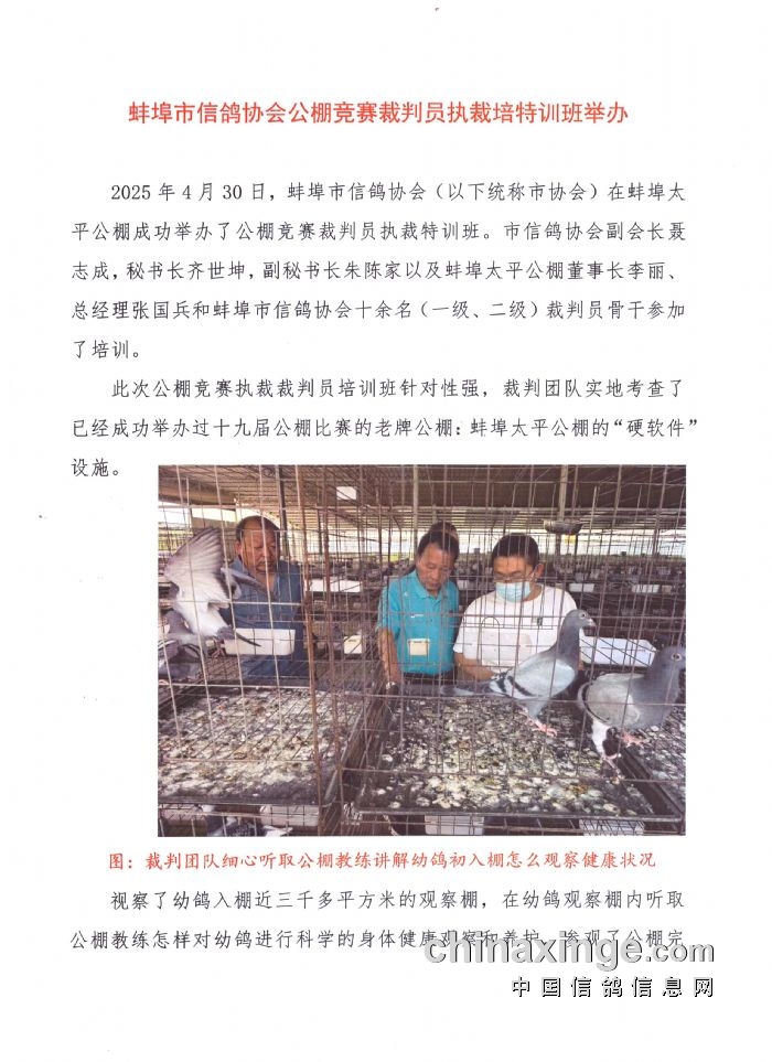 蚌埠市信鸽协会公棚竞赛执裁裁判员培训班举办