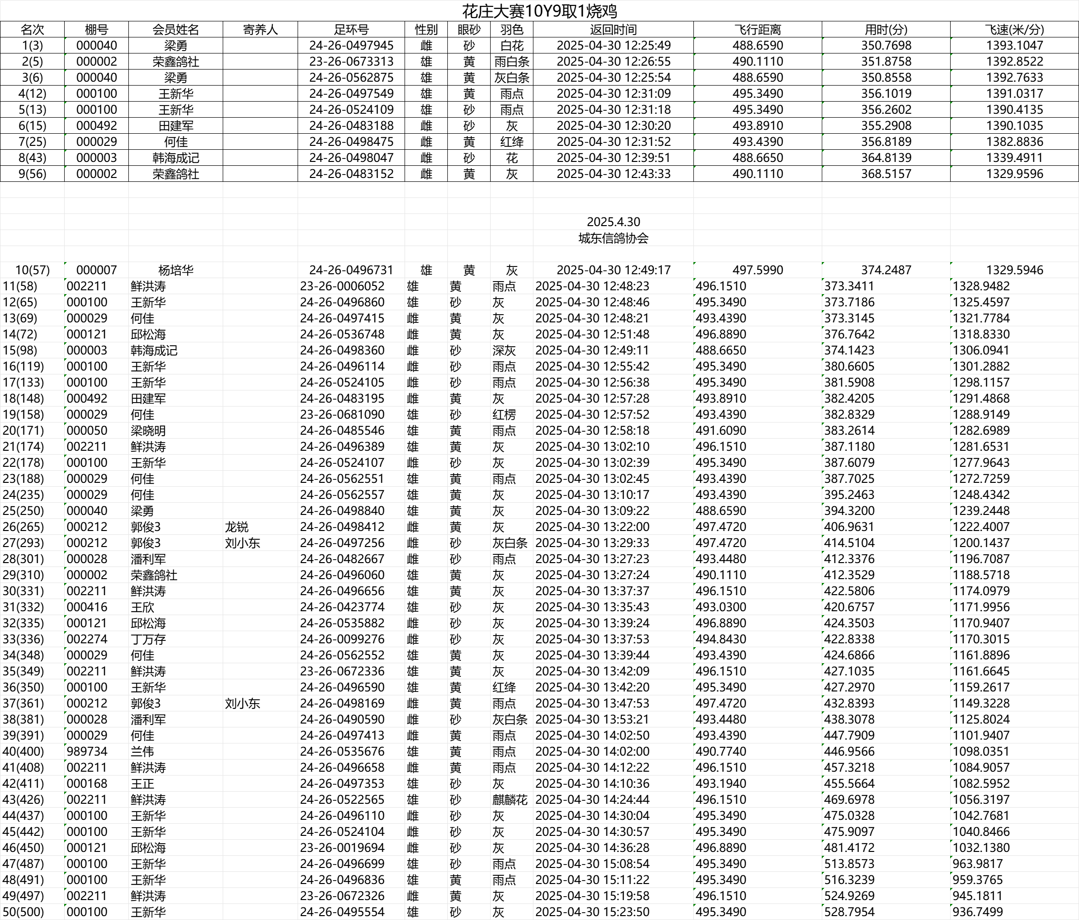 城东信鸽协会400KM临洮大赛50Y22取1