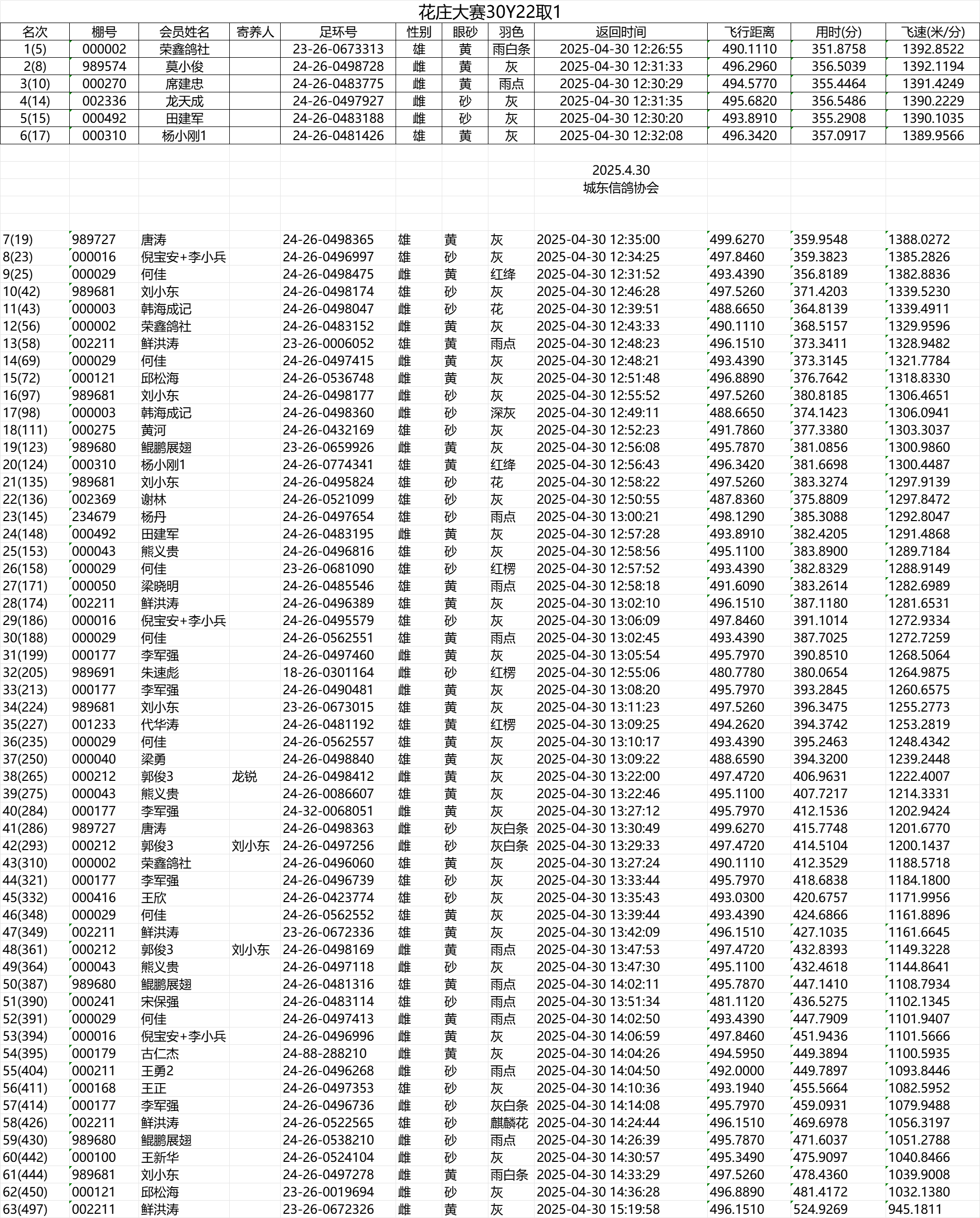 城东信鸽协会400KM临洮大赛30Y22取1