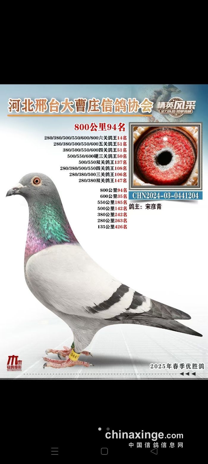大曹庄鸽会25年秋220-280-340-380公里四关鸽王临时成绩