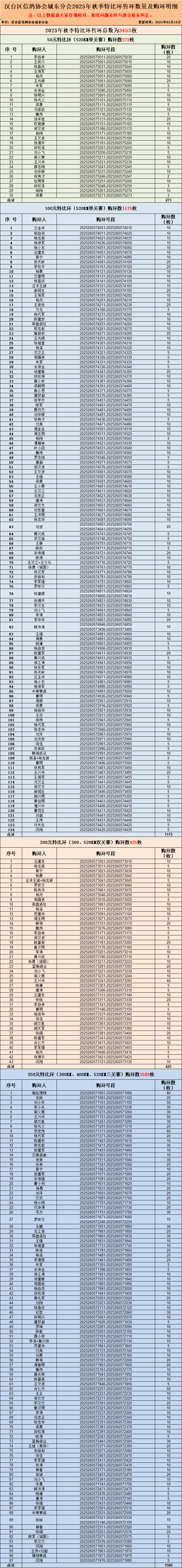 2025年秋季特比环售环数量及购环明细(5.18更新)