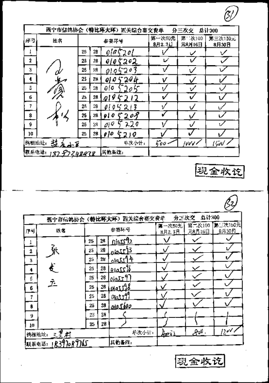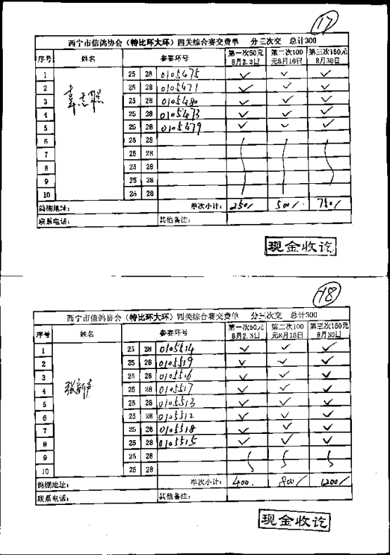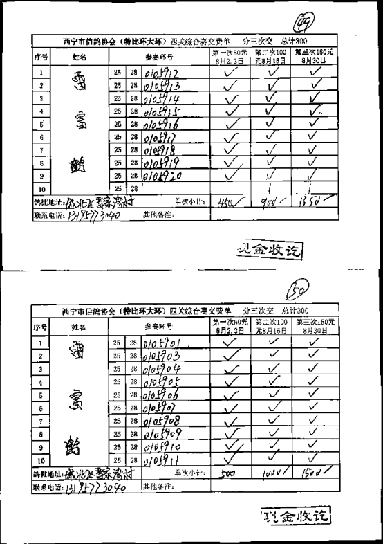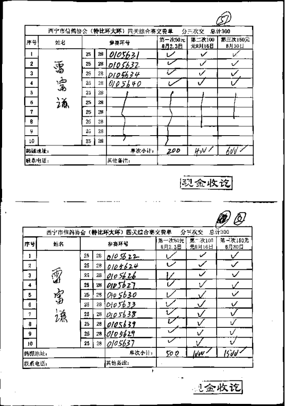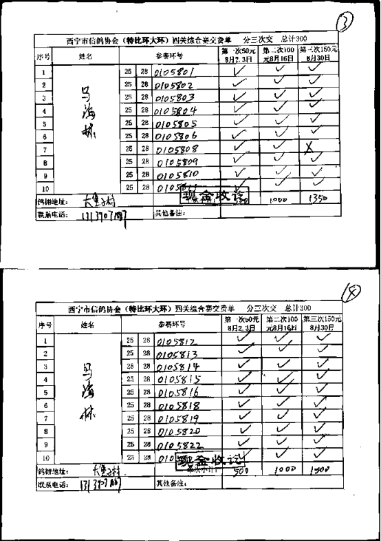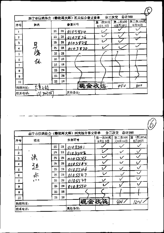 西宁市信鸽协会小环团体预览版