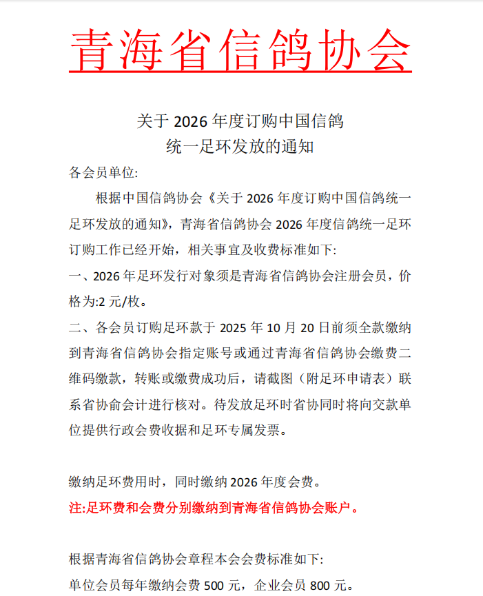 关于青海省信鸽协会组织参加2025年北方十四省信鸽锦标赛的通知
