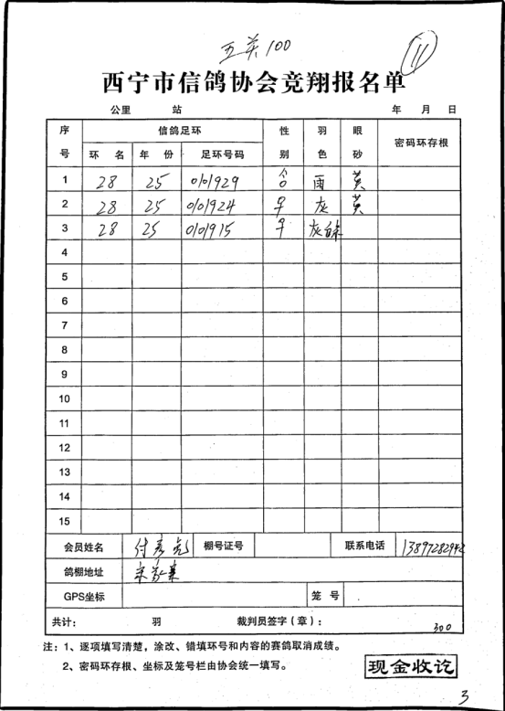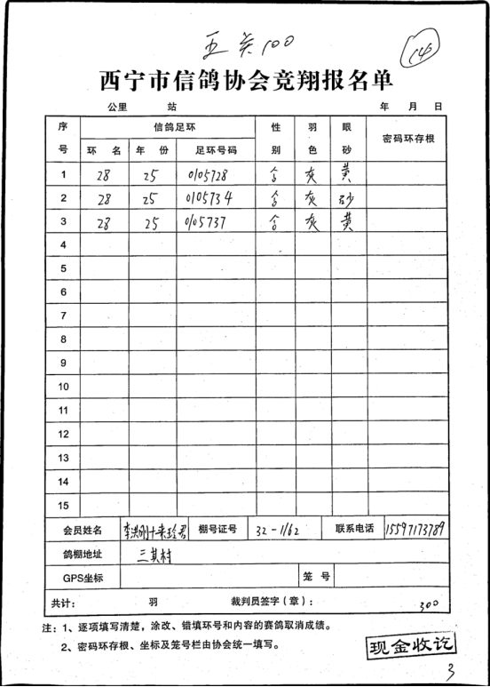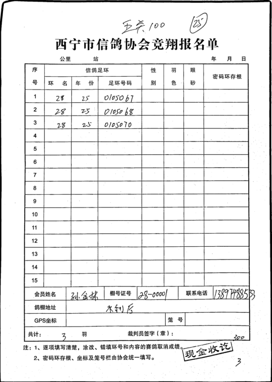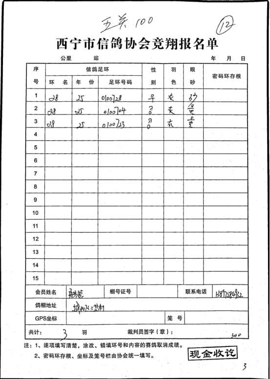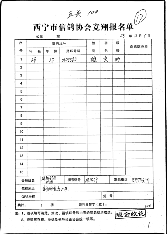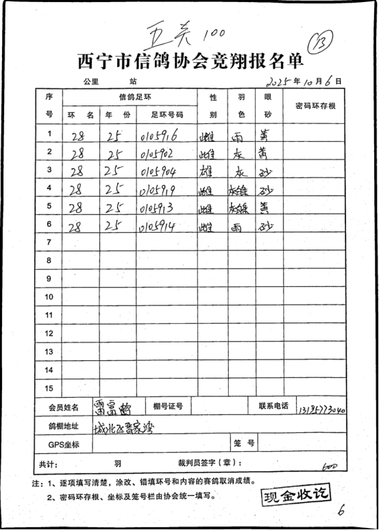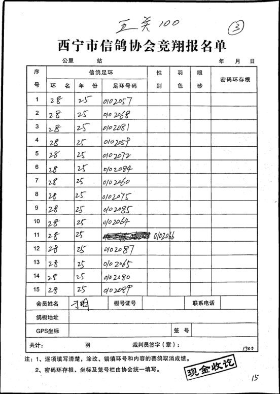 西宁市信鸽协会2025年秋季特比环四关综合赛三次交费大环名次表