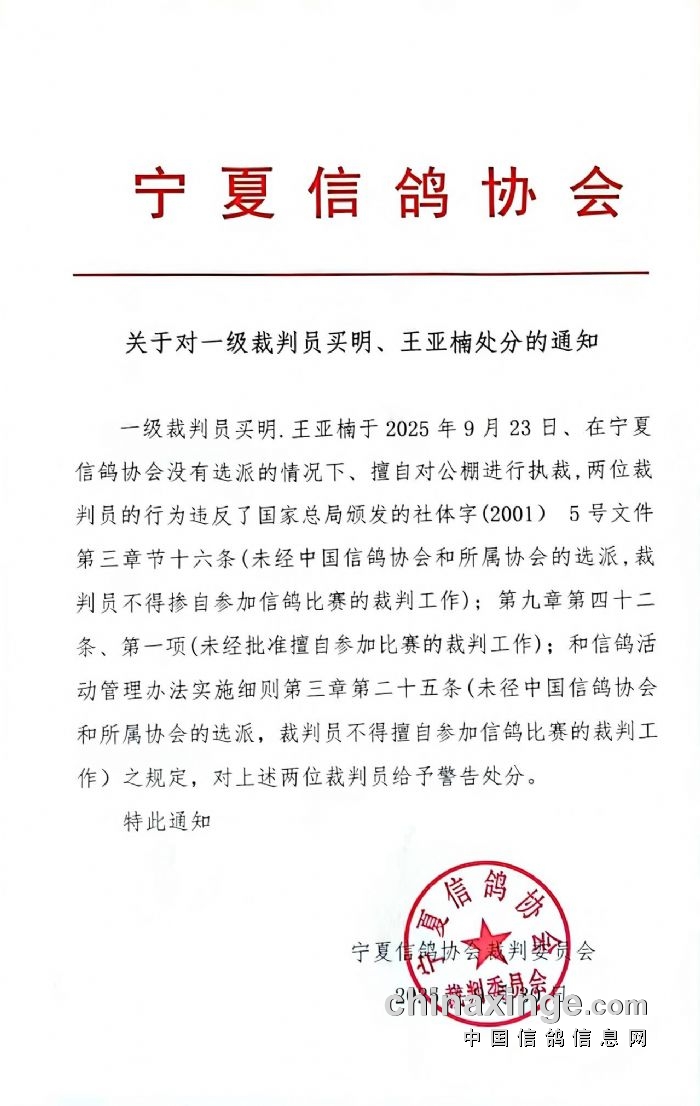 宁夏信鸽协会关于宁夏国力公棚规程公告