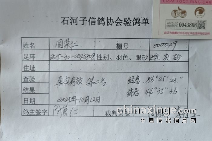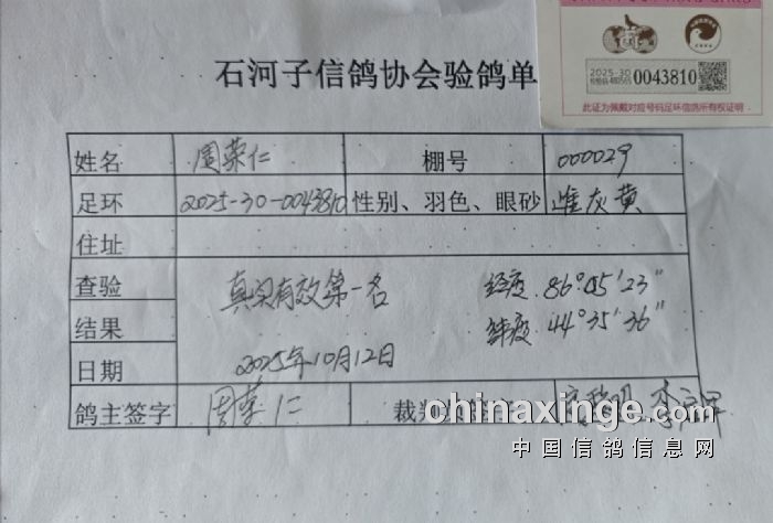 第一名 周荣仁 2025-30-0043810 雌灰黄眼