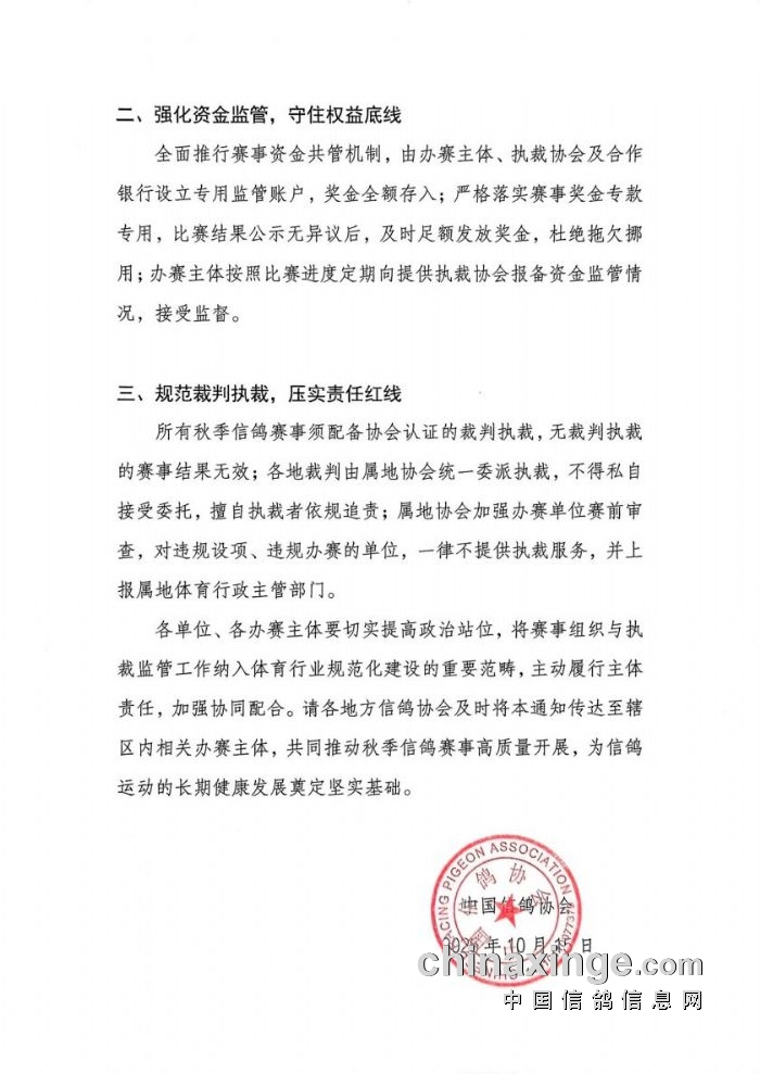转载—中国信鸽协会关于规范有序开展秋季信鸽赛事活动的通知