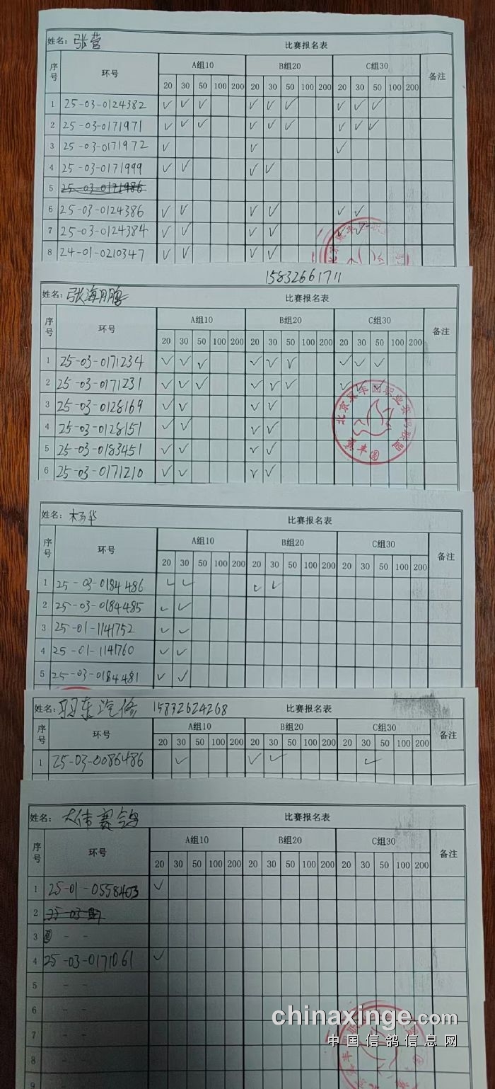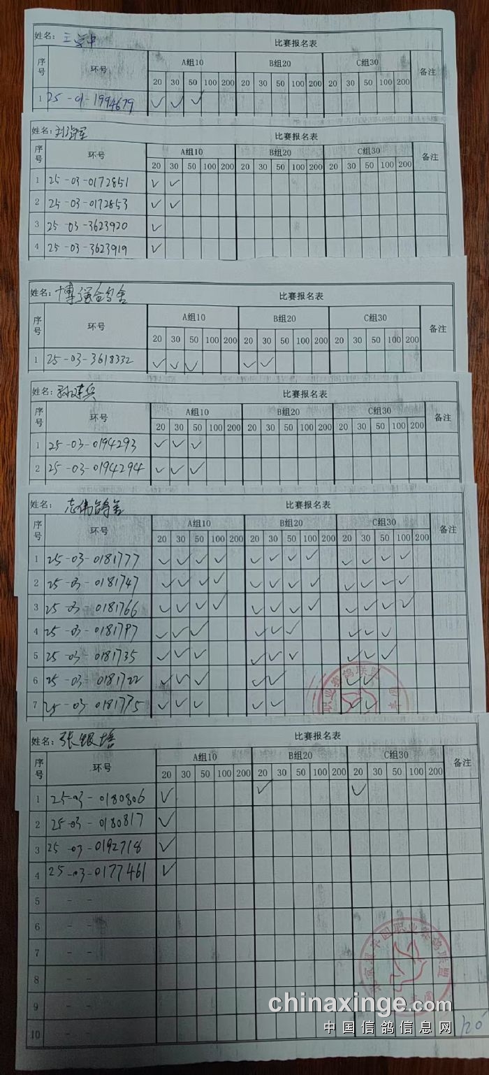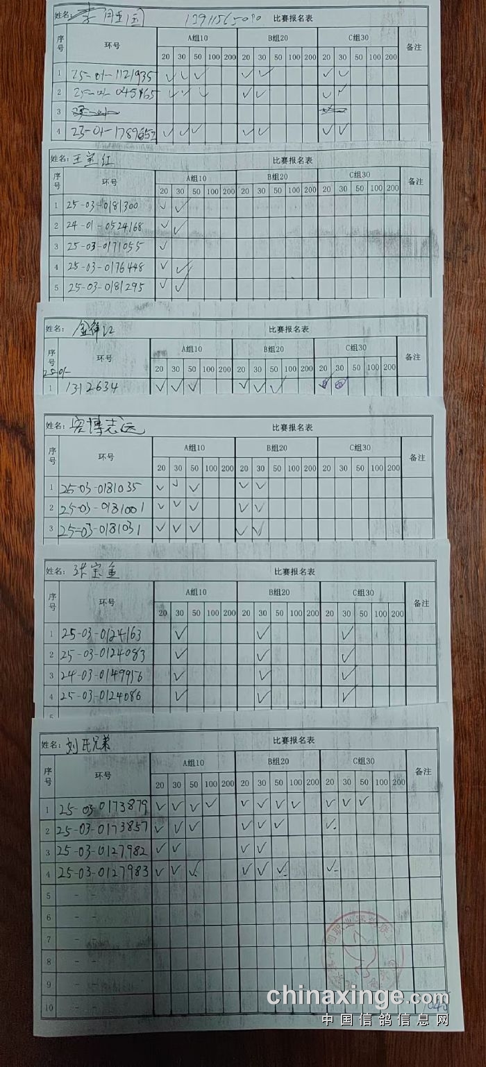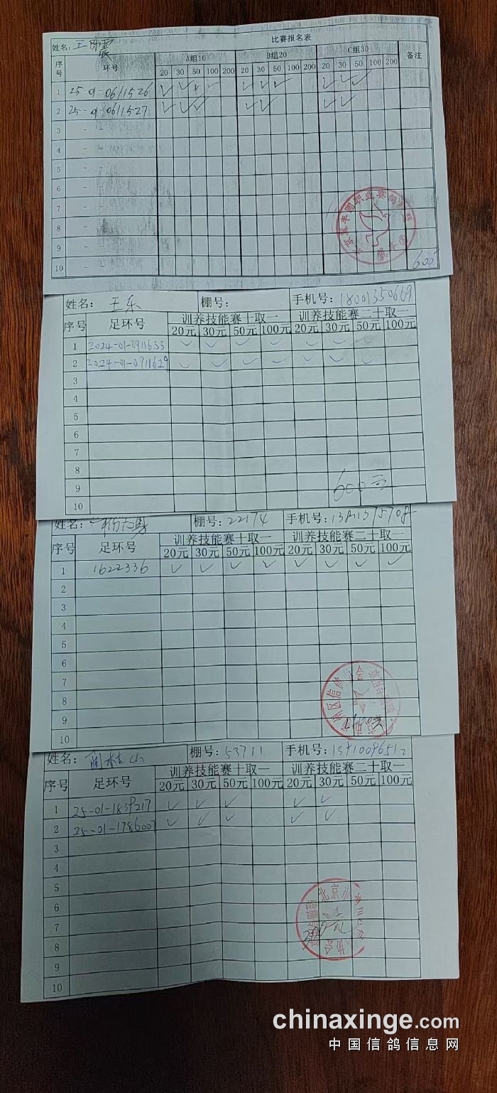 通州区信鸽协会2025年10月18日300公里比赛现场报名单