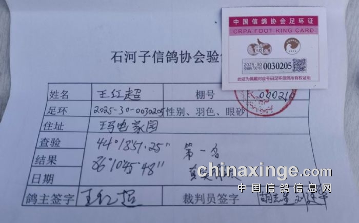 第一名 王红超 2025-30-0030205 雄雨点砂眼