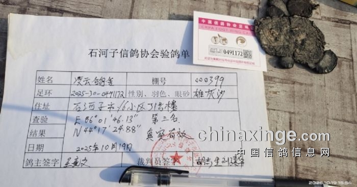 第三名凌云鸽舍 2025-30-0491172雄 灰 砂眼